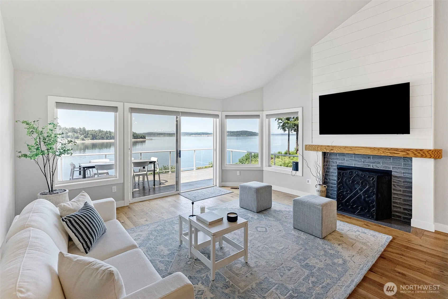 Captivating front-row Puget Sound views of Ketron Island from this completely remodeled 3-bedroom, 2.5-bath Steilacoom residence. This luxurious 3,000+ sq ft west-facing home delivers breathtaking sunsets and Olympic Mountain vistas. The main level features a gourmet kitchen, open living with floor-to-ceiling windows, and impeccable primary suite with stunning water views. Lower level offers spacious media room, executive office, junior primary suite with full bath, plus outdoor entertaining areas. Premium hardwood floors on main level and designer finishes throughout create sophisticated coastal elegance. Located on desirable Chapman Loop with spacious 2-car garage. This beautiful bluff-front sanctuary offers turnkey luxury waterfront!