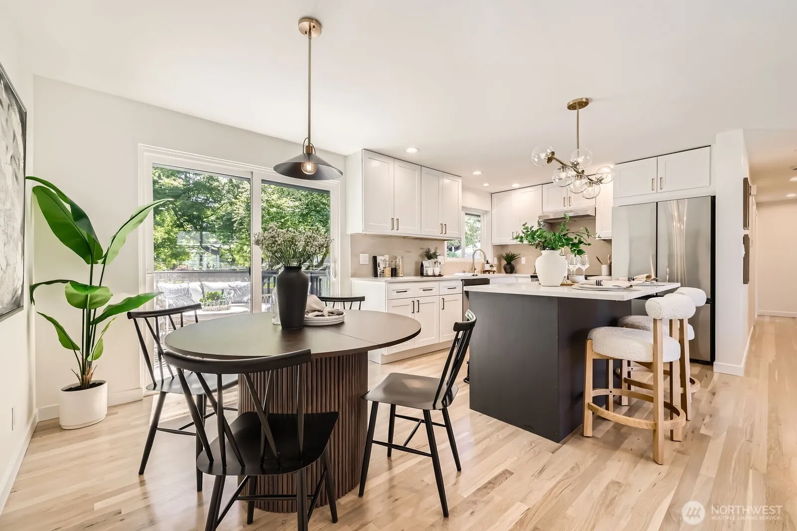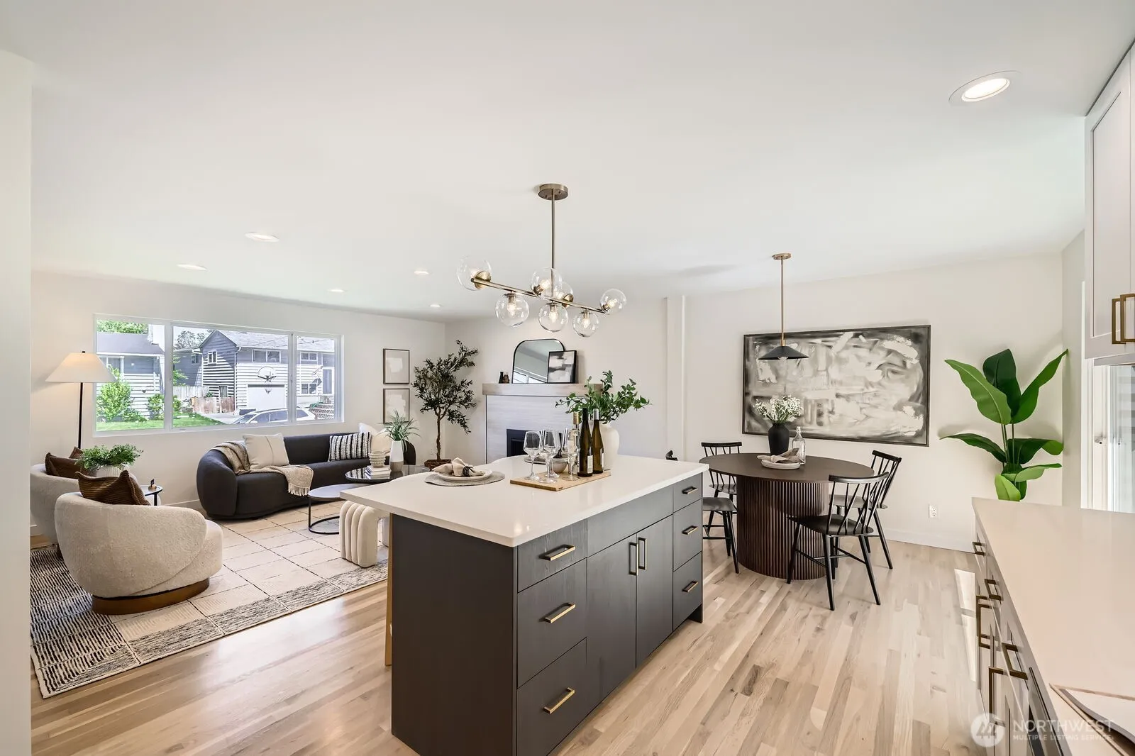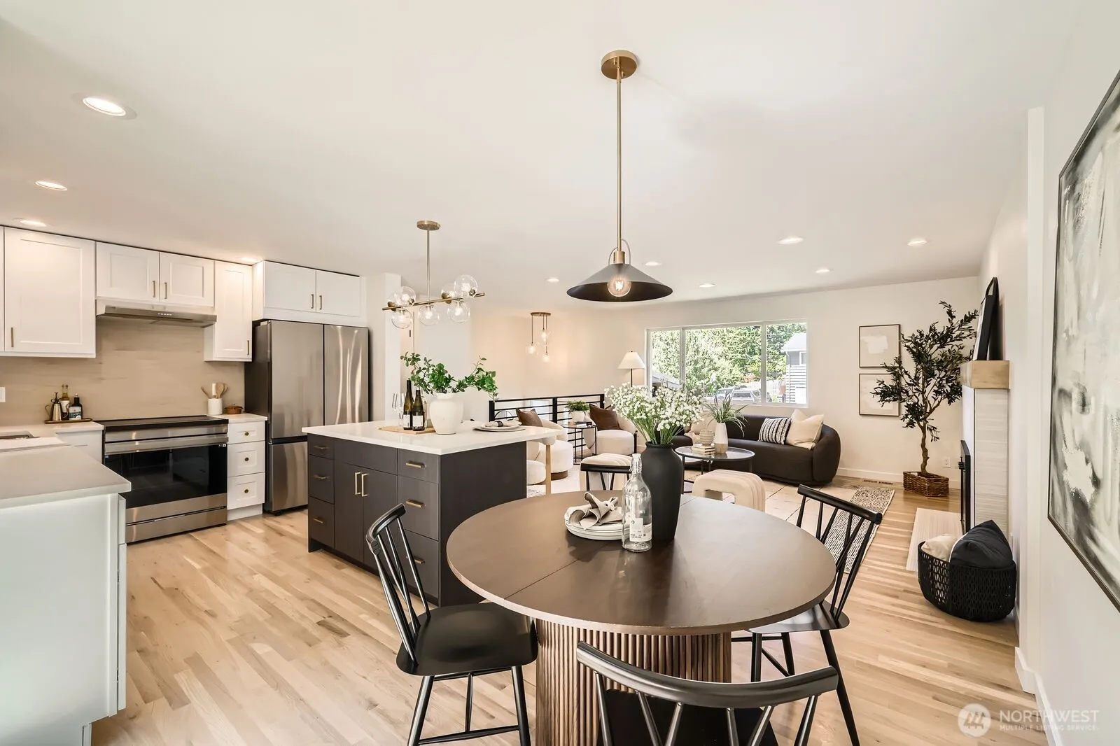 Nothing like it on the market! Every inch of this modern remodel has been thoughtfully reimagined—and it shows! Starting w/ the custom covered front porch, flowing into a bright living room w/refinished hardwoods, quartz countertops, open-concept kitchen, SS appliances, and designer tiled bathrooms w/ on-trend brass + matte black fixtures. It even has a new roof! Soaked in sunshine and cooled by A/C, this home keeps you comfy in every season. With 5 BDR and 3 BTH, there’s room for everything—WFH setups, visiting guests, or your latest hobby. The big corner lot is dialed in with lush landscaping, hardscaped garden beds, RV parking, and room to play. Just minutes from the Lynnwood light rail, Alderwood Mall, I-5, and everything else you love.