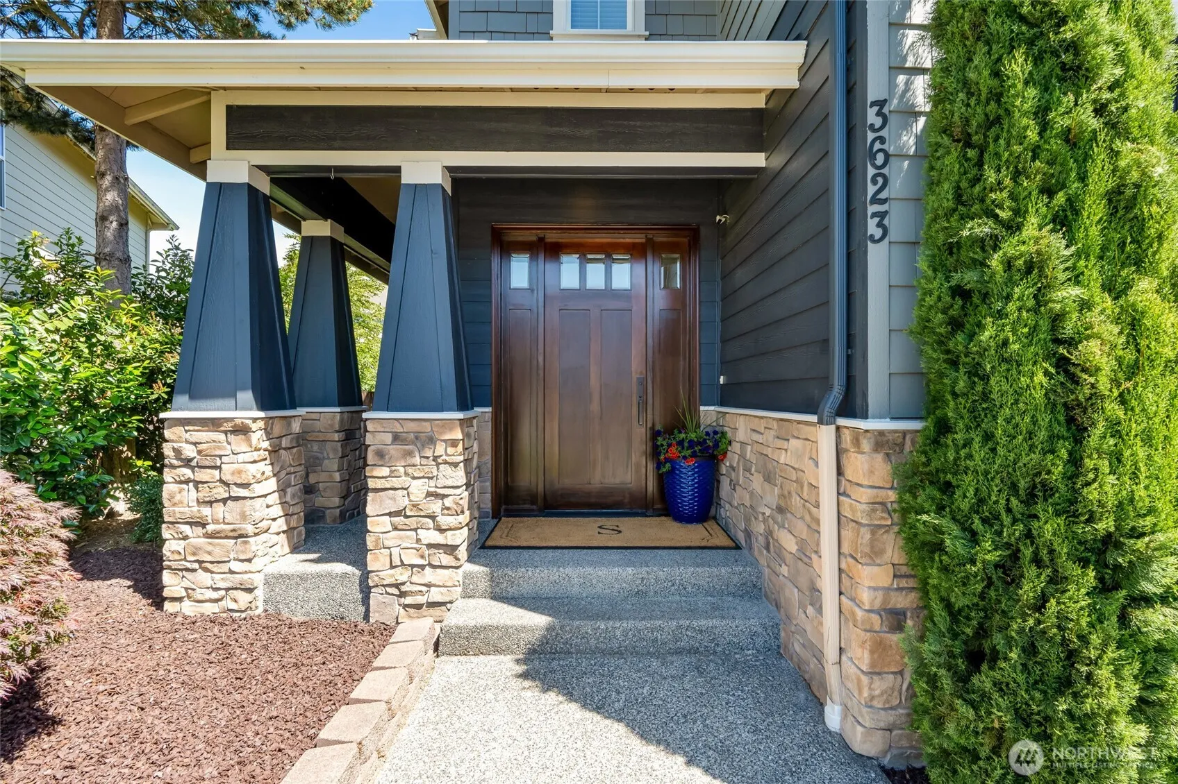 Masterfully remodeled home in Mill Creek’s “Stonehedge” neighborhood. Built in 2006, this nearly 4000 square foot house looks like a “model home” that was built today. The functional two-story floor plan offers 4 bedrooms, bonus room, and a main floor office. The kitchen is stunning (new floor, quartz countertops, and appliances) and flows seamlessly into the family room, the dining room (butler’s pantry), and out to the new deck and cabana. The primary bedroom features an extraordinary closet and bathroom. The 3 additional bedrooms, bonus room, full bathroom, and utility room complete the upper level. The 3-car tandem garage is fully finished. New artificial turf in front and back. This is truly a must-see home!