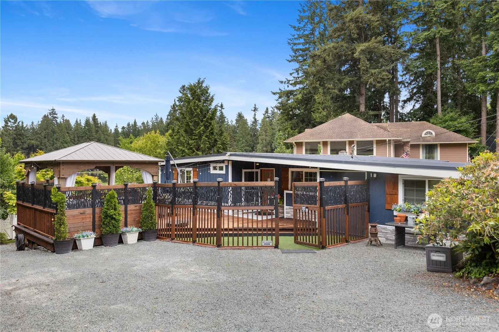 Lakefront Living with assumable 3.75% VA loan option–Stunning Rambler with Daylight Basement, Private Dock & Sandy Beach! Live the dream in this beautifully remodeled home on Lake Ketchum w/a level yard, private dock & sandy beach on 53′ Lakefront—ideal for relaxing & lake activities. Fully updated kitchen w/new counters, cabinets & fresh flooring throughout. Lower level offers versatility w/a bedroom that can be used as a family rm. Enjoy water views from almost every room. Relax on the expansive wrap-around deck, gazebo, or by the firepit. A greenhouse & garden space for your green thumb & workshop for DIY projects. Separate office/hobby space w/outside entrance. Whole house generator & 2yr old HVAC. Peaceful community w/local activities!