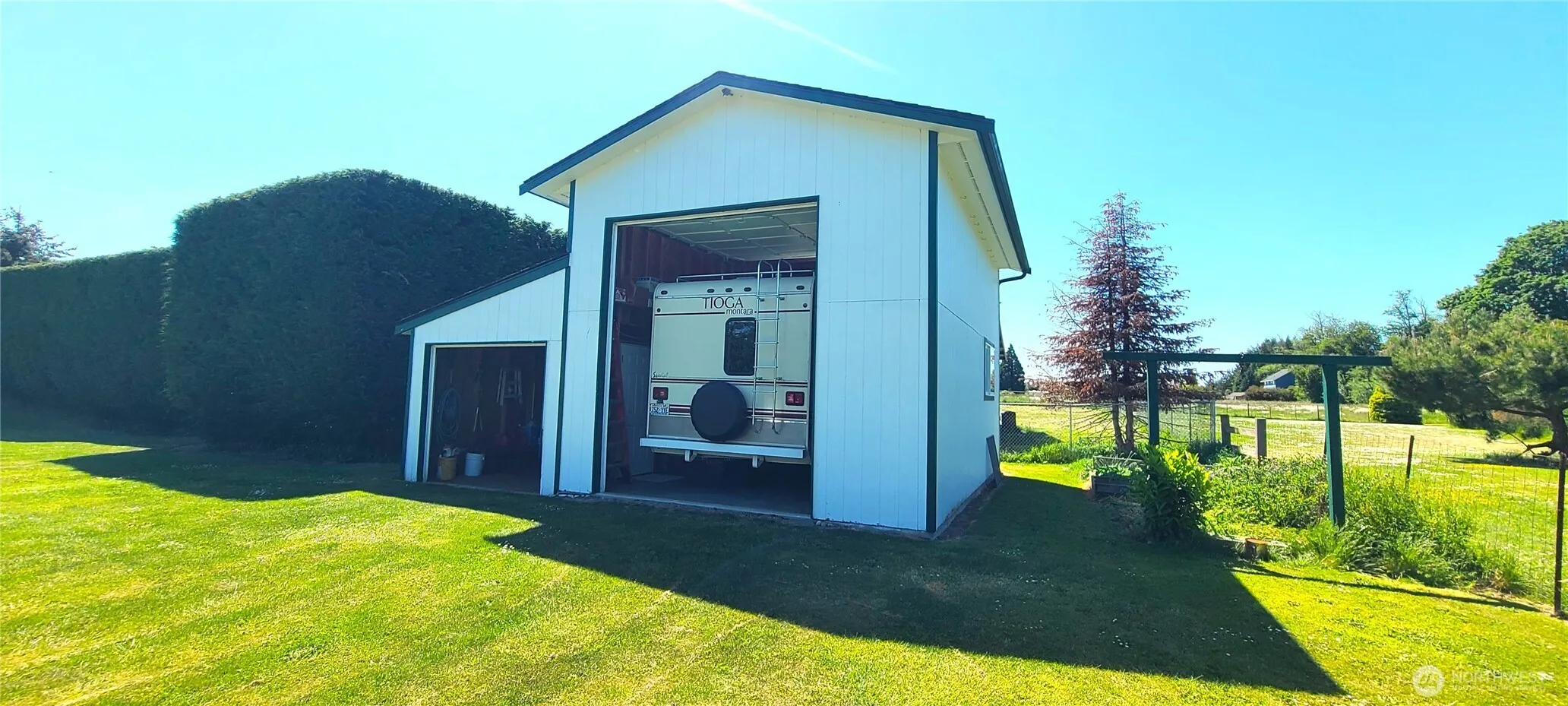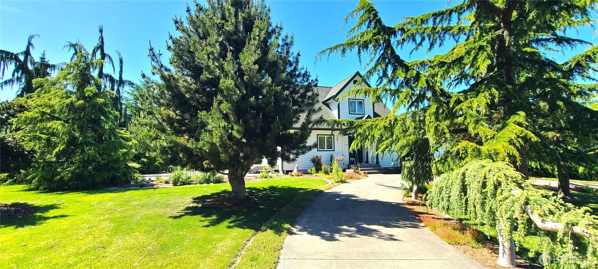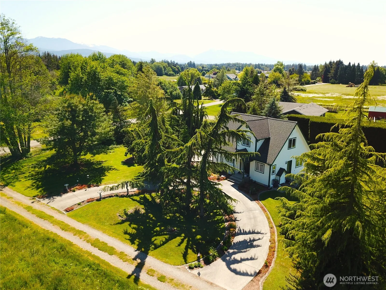 Picture Perfect charming NW contemporary home! Wonderfully maintained by its original owner! Peaceful Park like setting and excellent neighborhood location close to town on dead end street. Open concept living areas with well-designed kitchen. Light filled rooms throughout with views of the peaceful setting and peek-a-boo mountain view upstairs. Expansive patio and mature landscaping. RV garage with 12′ door and attached side garage. Oversized detached garage with full bath/laundry and 2nd story loft! Garden space. Individual well is not metered! (pre-2013). Conventional gravity septic system. NO HOA!!! Home has been maintained very well by its current owner. Perfect home, setting, and location for this price. Won’t Last.