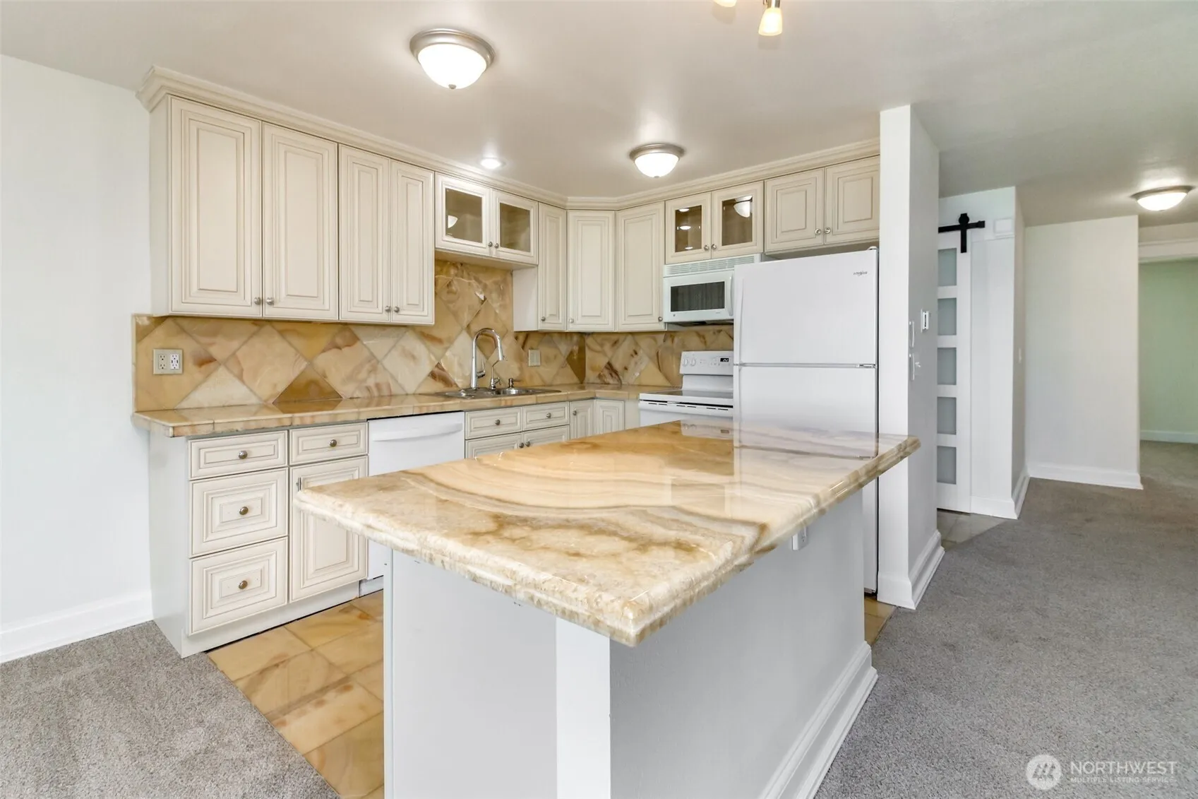 South Shores cozy, top-floor 2-bedroom condo with gorgeous 180-degree views of the Puget Sound, Maury Island and the Olympic Mountains. Move-in ready and recently renovated with new carpet and paint throughout. Spacious bedrooms with ample storage and a beautiful neutral color palette is thoughtfully woven throughout the kitchen, bathrooms and even the fireplace in the living room. Centrally located within walking distance to downtown Des Moines shopping and restaurants, this gated community with assigned covered parking offers low-maintenance living so you have more time to lounge at the outdoor pool. Enjoy the sunsets while walking along the Marina or relaxing on your covered private deck.