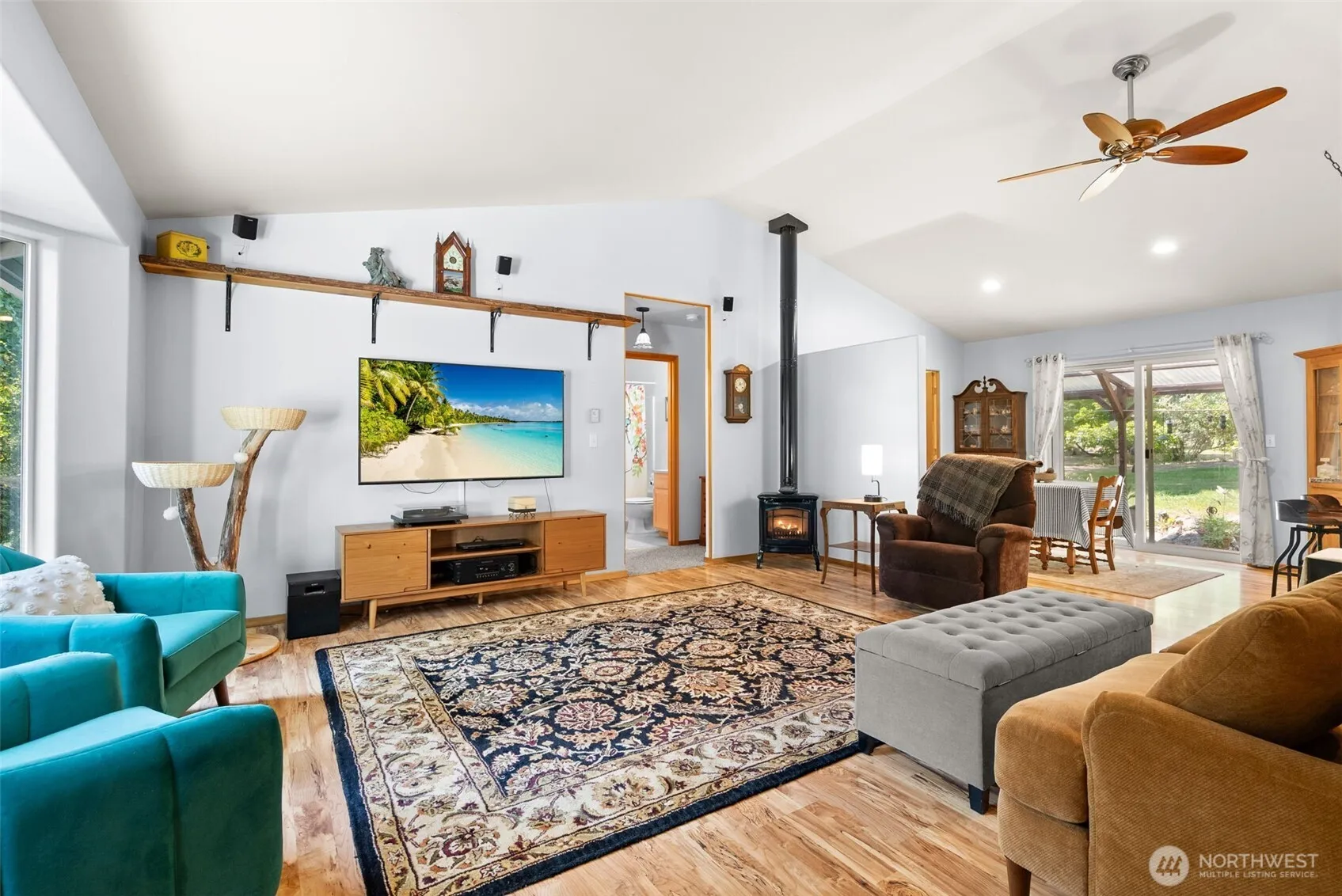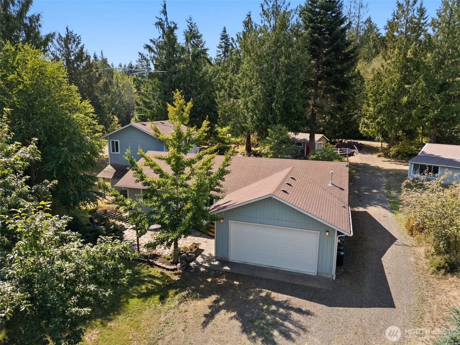 Pride of ownership defines this Chimacum retreat, where peaceful living meets thoughtful design. Nestled in a park-like setting on over 2.5 acres among trees and gardens, this home offers a balance of comfort and function throughout. Originally a rambler, a 2-story addition was added in 2006, creating a vaulted, light-filled space ideal for work, hobbies, or relaxation. The spacious updated kitchen features granite counters, subway tile backsplash & maple shaker cabinets. The main-floor primary bedroom w/ its own en suite bath adds ease and convenience. Two propane fireplaces and a heat pump provide year-round comfort. Extras include a spacious workshop, hobby shed, greenhouse, two equipment sheds, plus RV parking with a through-driveway.