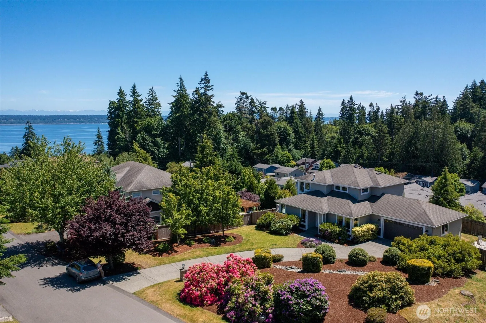 LAST CHANCE! Majestic Kingston gem comes off the market end of day Sunday, September 29—schedule your tour today! 0.35ac corner lot with panoramic views of Puget Sound—the ideal haven for ferry commuters to Seattle or Edmonds. Lush landscaping, long drive. Open main: windows light kitchen/great rm w/ vistas. Cozy FP, deck over water. Den/flex versatility. Up: primary suite w/ views, ensuite, WIC +1 bed. Down: 3rd bed. Quiet Place trails next door. Serenity & convenience—dream retreat!