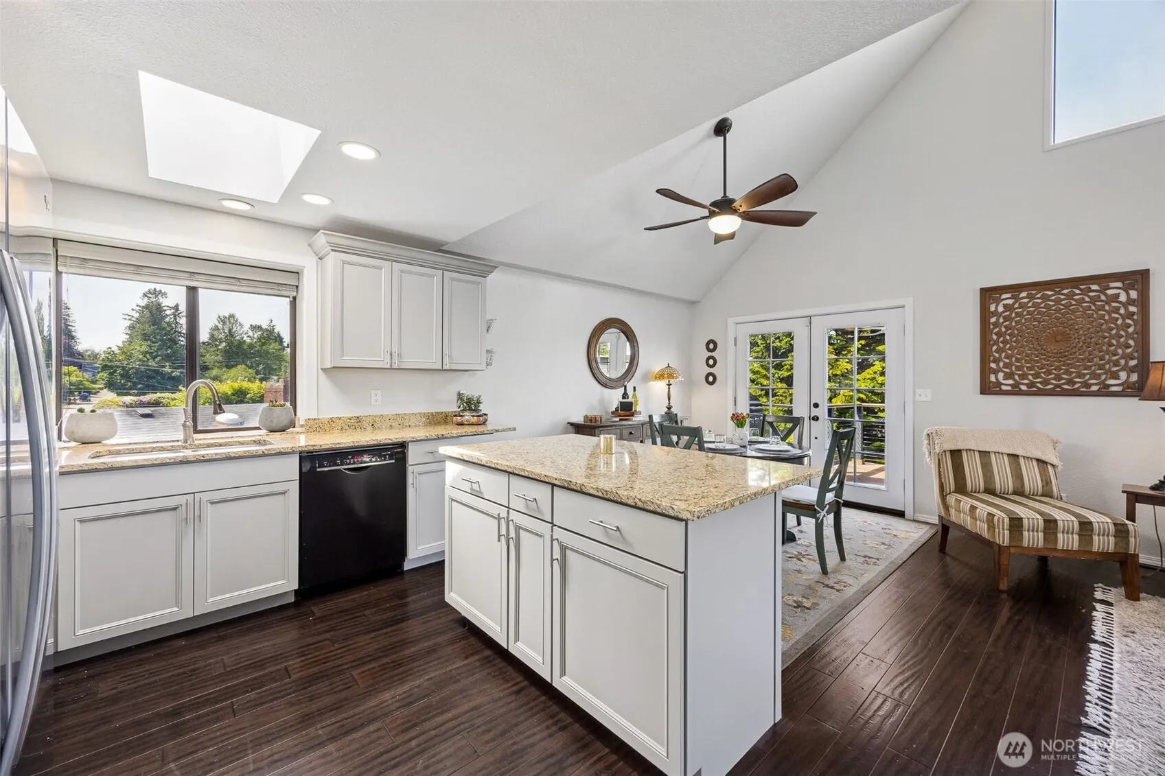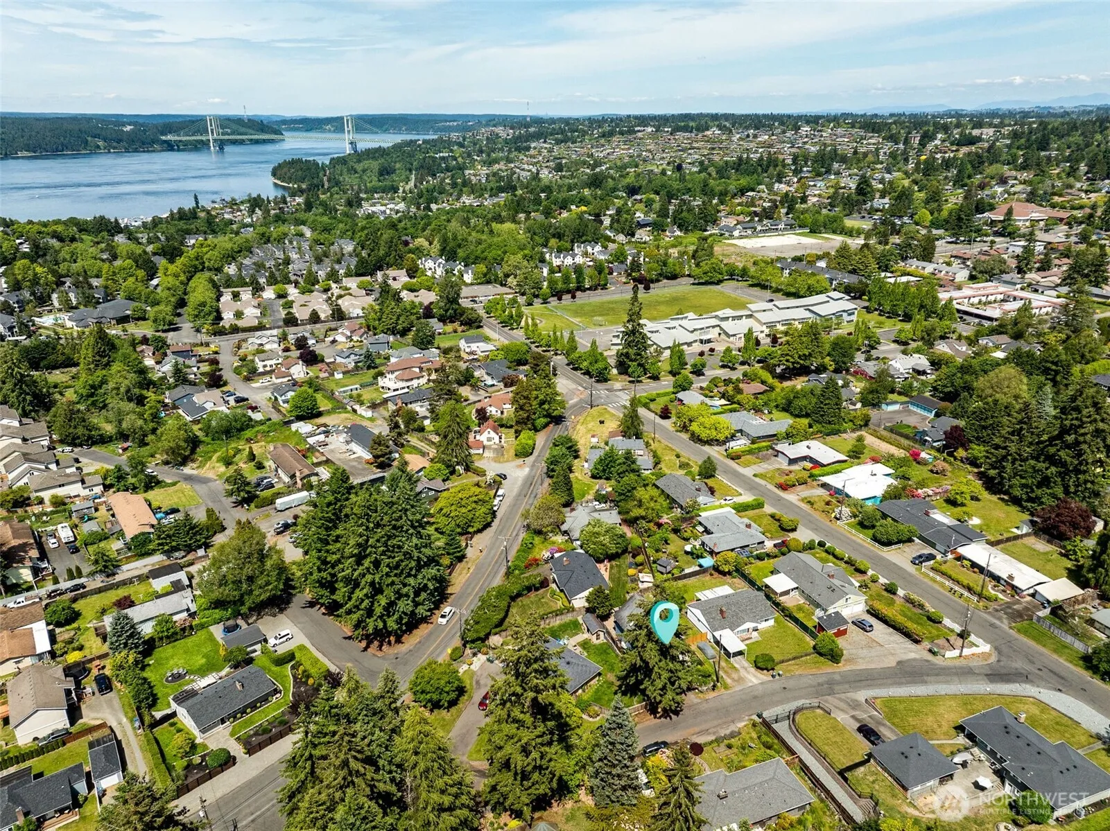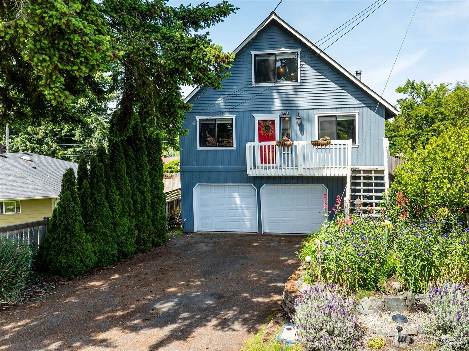 Dreamy Home in Prime University Place Location! Extensively updated throughout featuring remodeled kitchen + appliances, bathrooms, flooring, modern fixtures and efficient ductless heating/AC. Fabulous sunroom/office addition in the daylight basement, perfect for remote work or relaxation. Main level features open living and dining, two bedrooms including a junior primary with direct access to full bathroom. Step out from the dining room onto the stunning rooftop deck and enjoy colorful sunset skies! Upstairs stylish primary suite overlooks family area with peekaboo water view. Blooming perennials and a privacy hedgerow surround the home. Perfectly located for commuters, golf enthusiasts, and walking to top-rated schools- Must see!