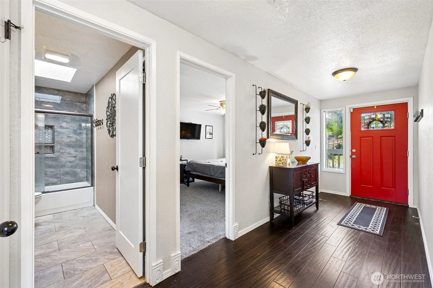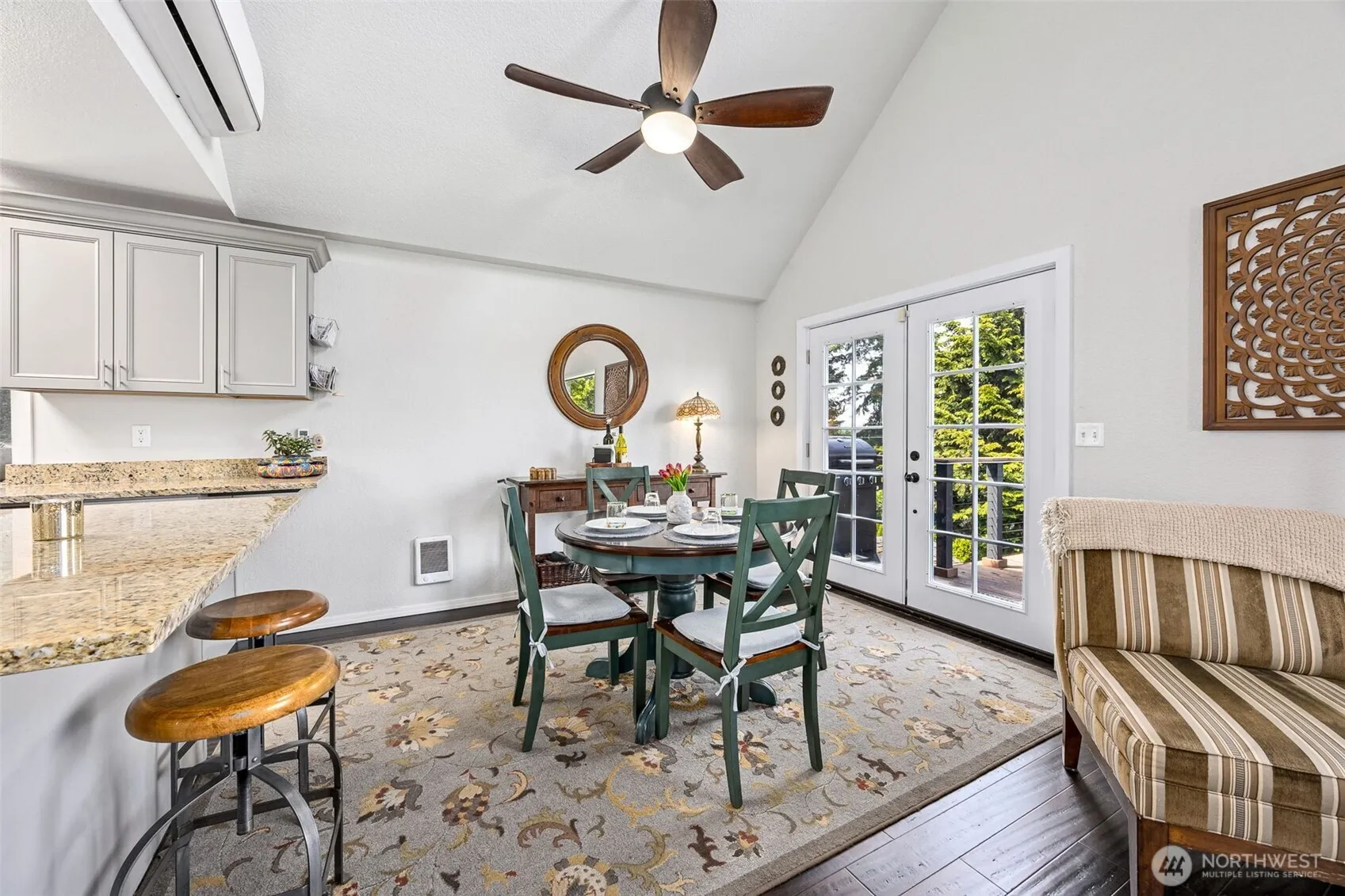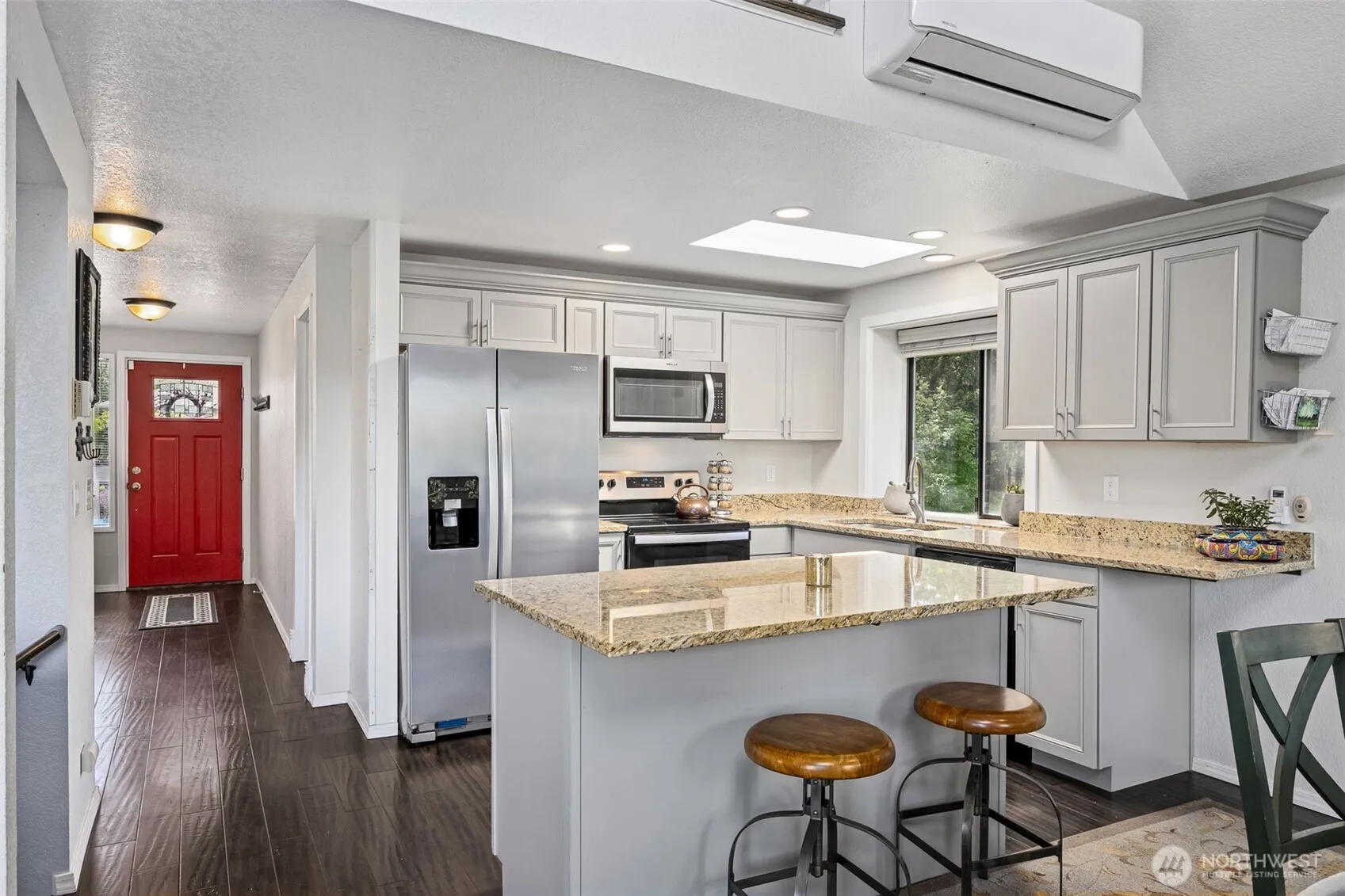 Dreamy Home in Prime University Place Location! Extensively updated throughout featuring remodeled kitchen + appliances, bathrooms, flooring, modern fixtures and efficient ductless heating/AC. Fabulous sunroom/office addition in the daylight basement, perfect for remote work or relaxation. Main level features open living and dining, two bedrooms including a junior primary with direct access to full bathroom. Step out from the dining room onto the stunning rooftop deck and enjoy colorful sunset skies! Upstairs stylish primary suite overlooks family area with peekaboo water view. Blooming perennials and a privacy hedgerow surround the home. Perfectly located for commuters, golf enthusiasts, and walking to top-rated schools- Must see!