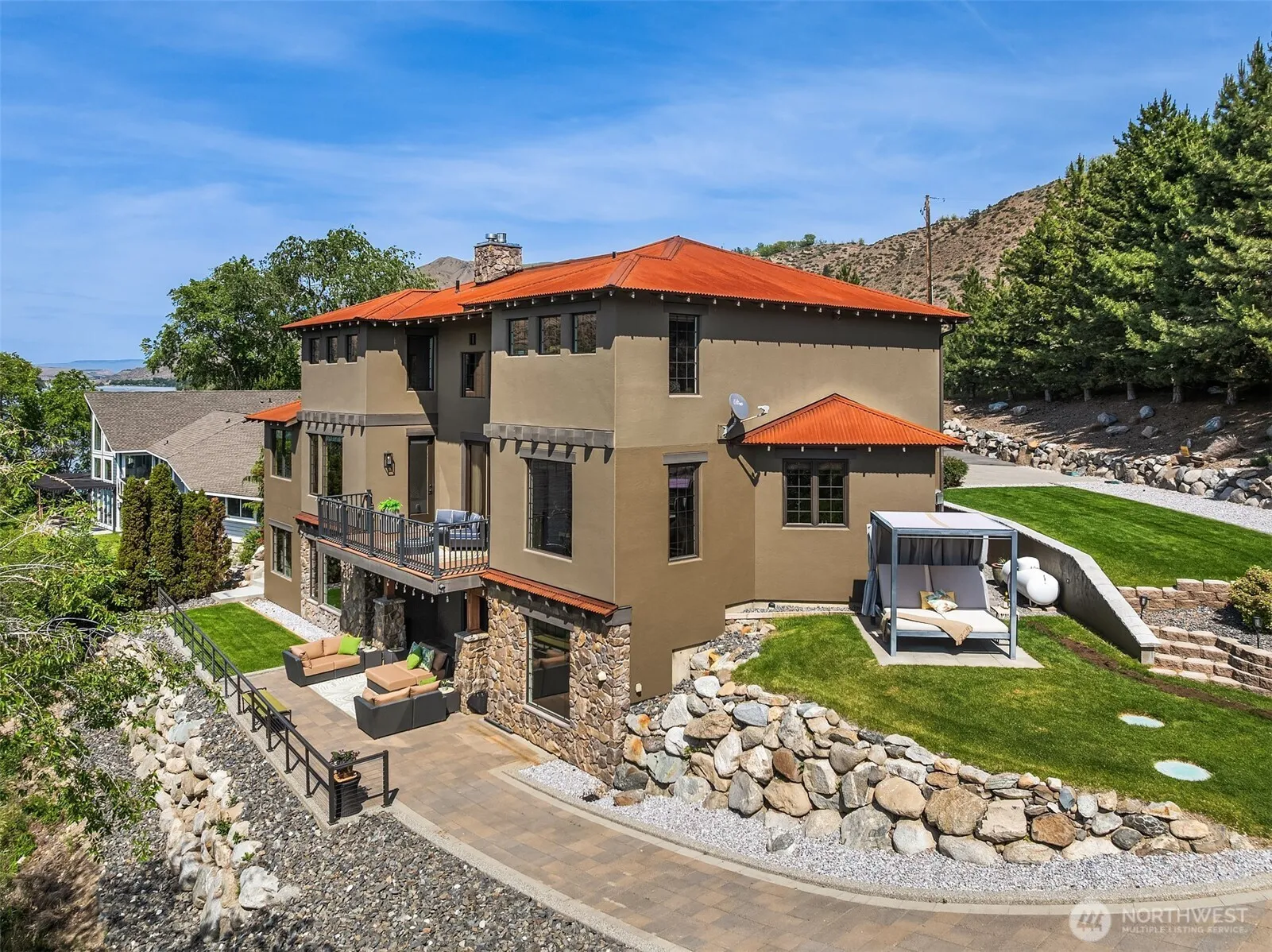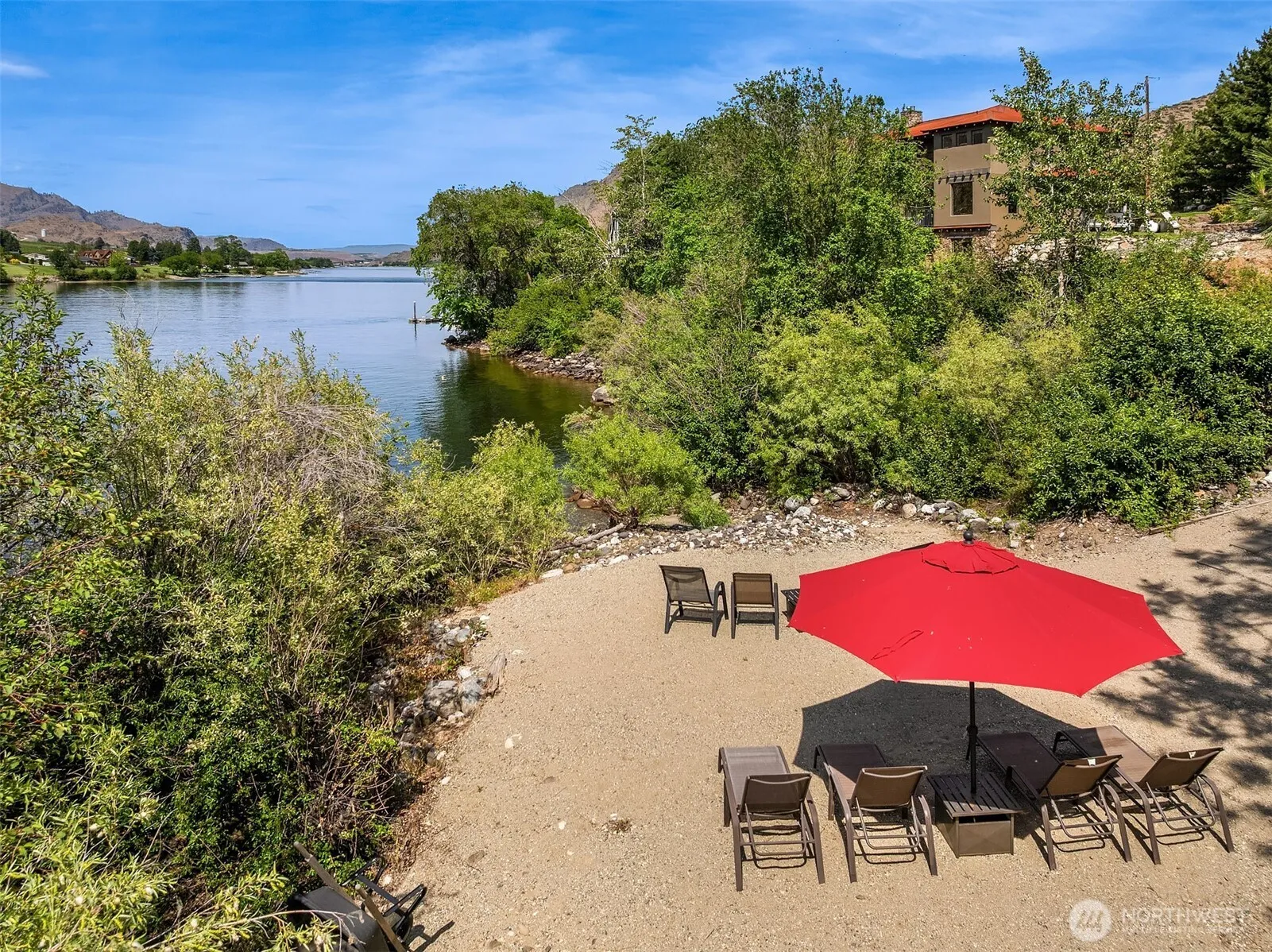 Columbia Point Lane Waterfront living in unique 10 home cmmunity only 7 miles from Chelan! Private beach area and stunning water Vistas. Completely remodeled custom home loaded with extras providing the ultimate getaway retreat or terrific for year-round living. Tremendous Great Room kitchen design with spacious dining, modern railing, sliders to view decks and patios, frplc, gorgeous quartz kitchen with entertainers size island. Gorgeous main flr primary suite 5 pc SPA bath, tub, dual vanities and water views. Additional beds up,one-Ensuite with 3/4 bath and kitchenette ideal for weekend guests. Lower level Rec rm with wet bar, Gym/bonus room, large laundry and main flr powder.Community boat dock with slips!