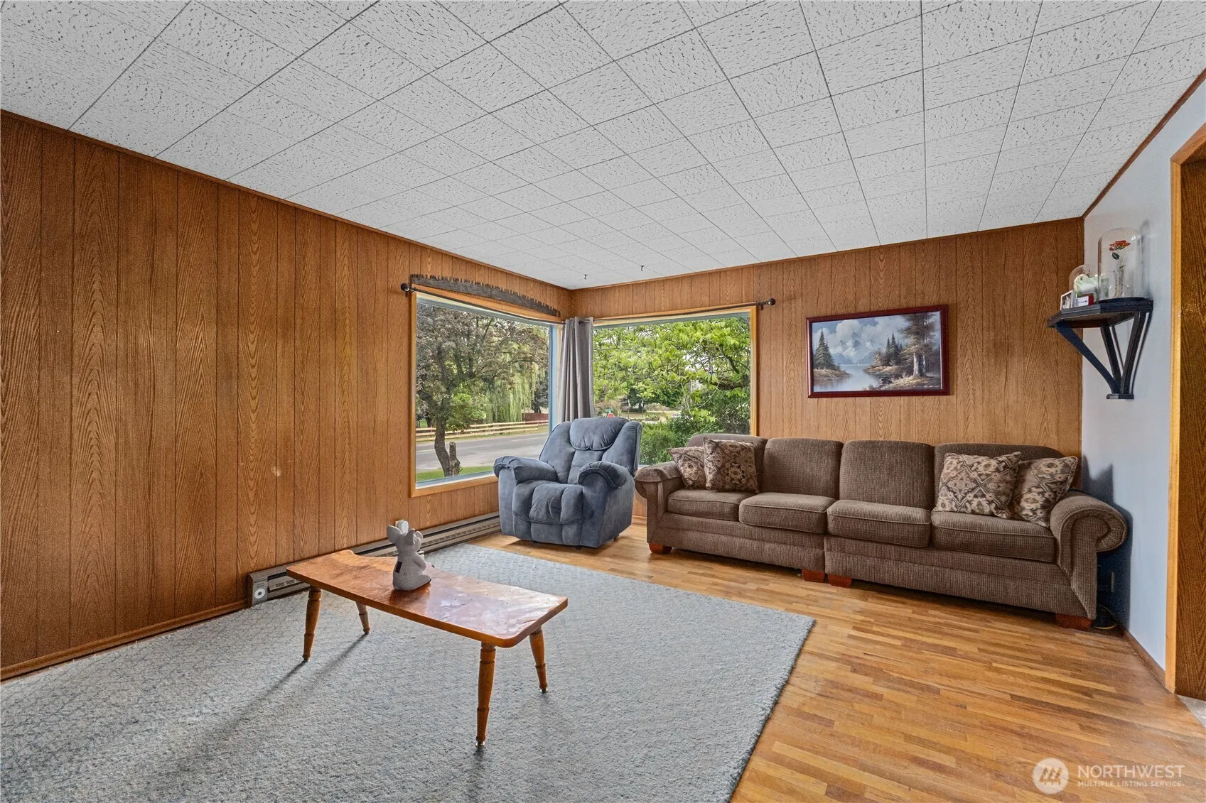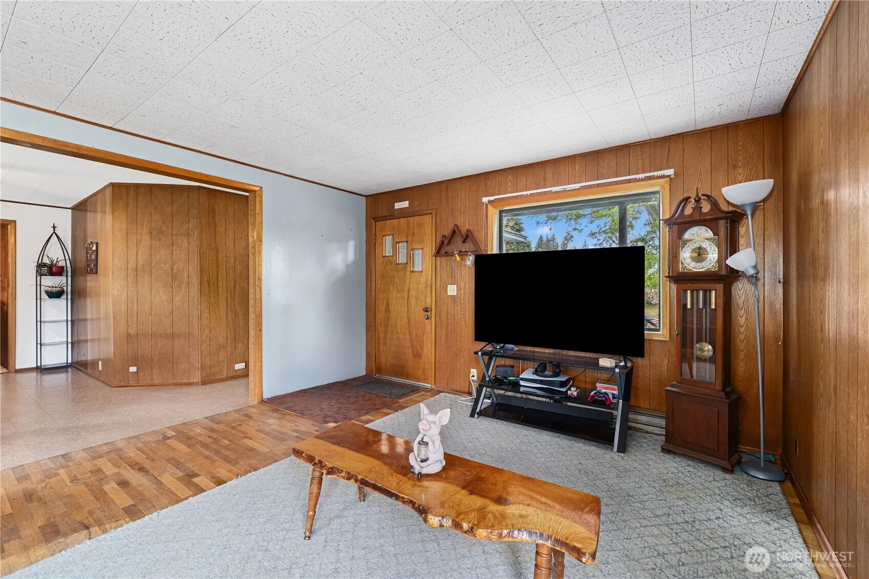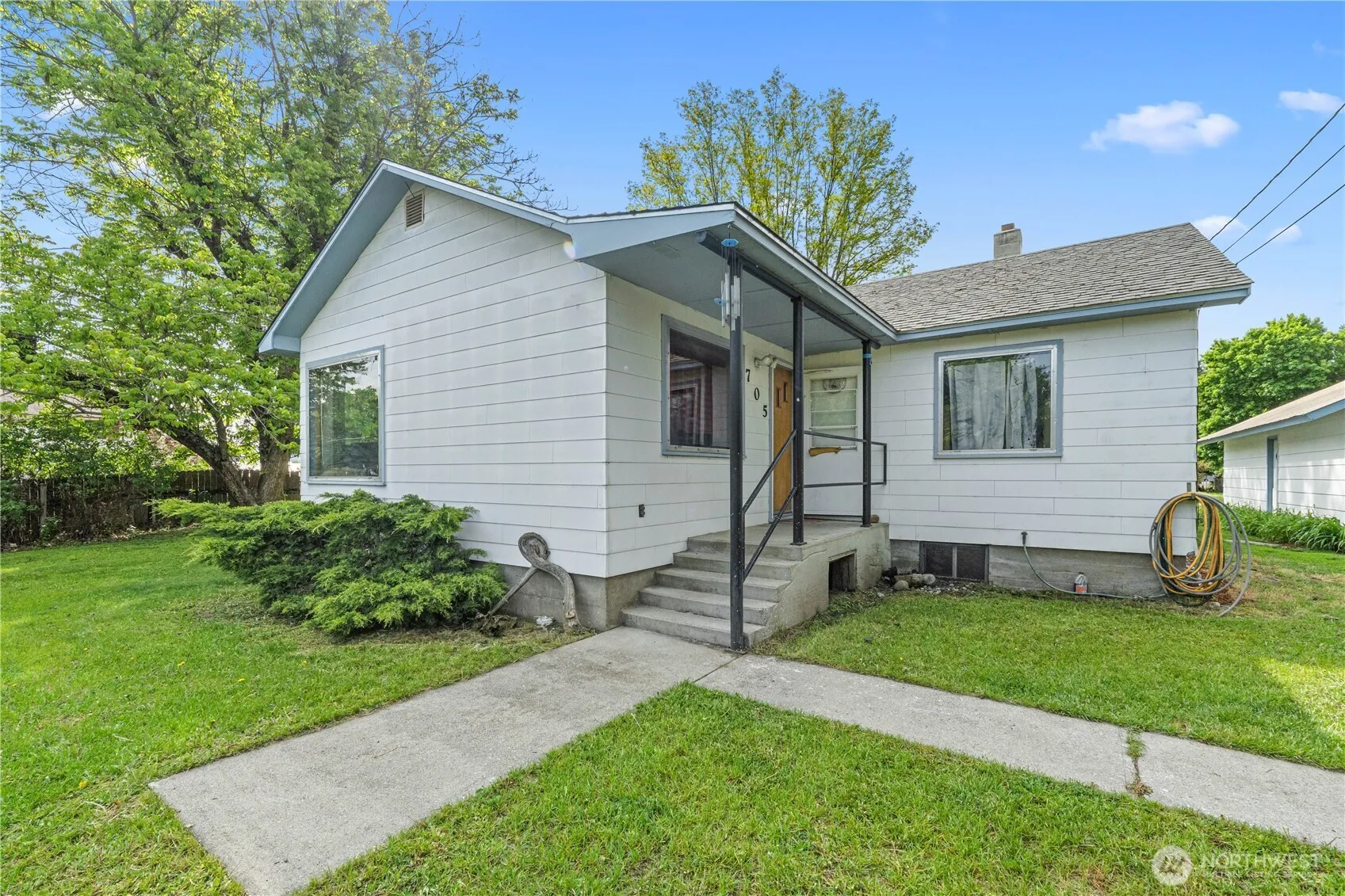 Come see all that this well maintained solid built home has to offer with its 2 car oversized garage and recently updated main bathroom.Featuring 2 beds on the main floor and non-conforming 3rd bed in the basement.The basement adds so much potential to add cozy usable additional living space.Natural light streams in through the big picture windows and highlights the natural woodwork throughout. The back covered patio is perfect for entertaining with its entrance right by the kitchen.The home is situated on an oversized corner lot just out of the city limits giving you the comfort of being close to amenities but not having as many limitations. The zoning on this property opens up more possibilities than its current use with the right vision.