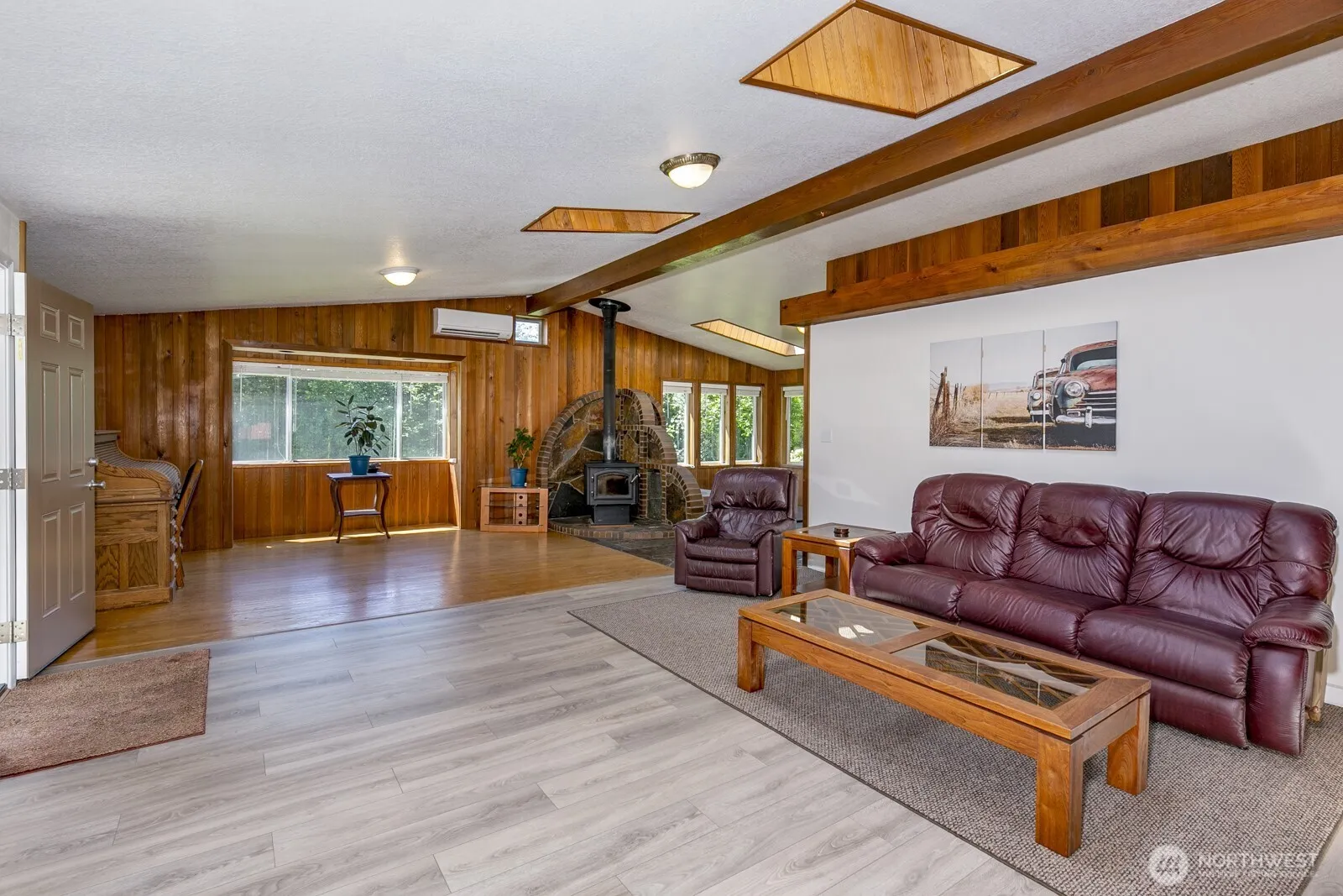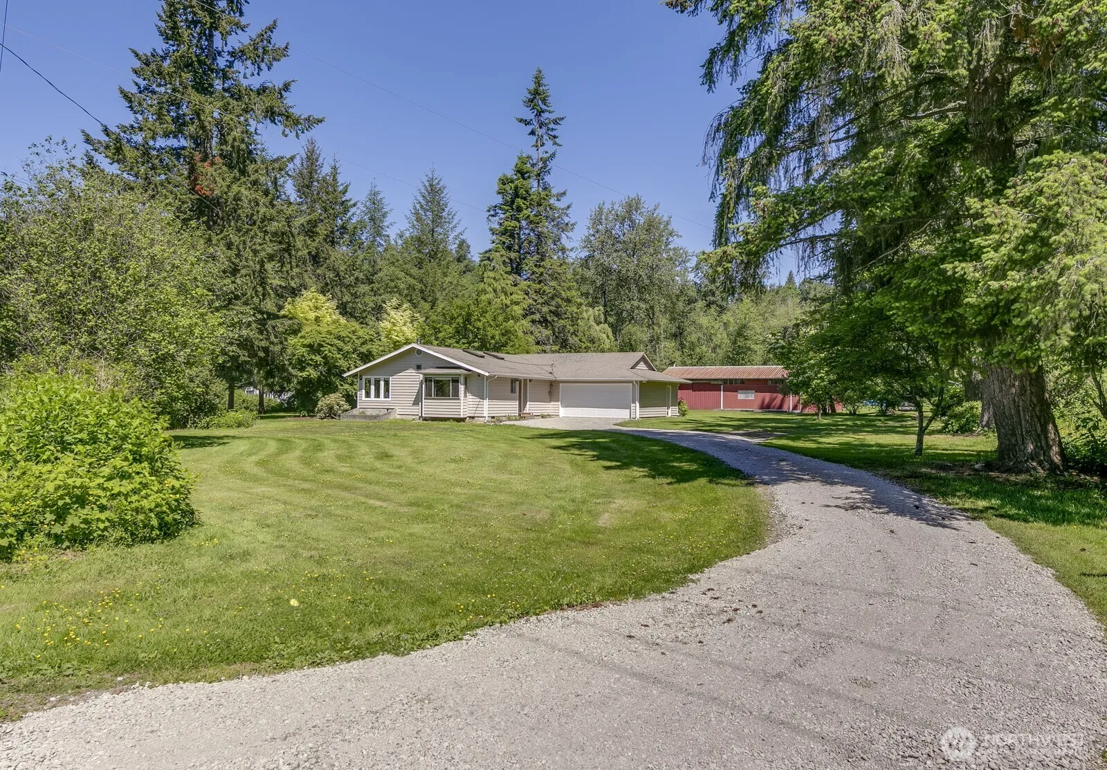 Beautifully updated 3 bed, 2 bath 1,805 sq ft rambler on 2.44 peaceful, flat acres. This move-in ready home features fresh flooring, paint, and a fully renovated kitchen with quartz countertops, slide-in range, and sleek range hood. Vaulted ceilings, a cozy wood stove, and an open floor plan create a warm, inviting space. Enjoy year-round comfort with a newer mini-split heating and cooling system. Outside, take advantage of a 24×60 barn/shop with a separate 200-amp power source, 24×24 covered RV/boat parking, and nearly 1 open acre ideal for animals, gardening, or hobbies. Country living with modern updates—don’t miss it!
