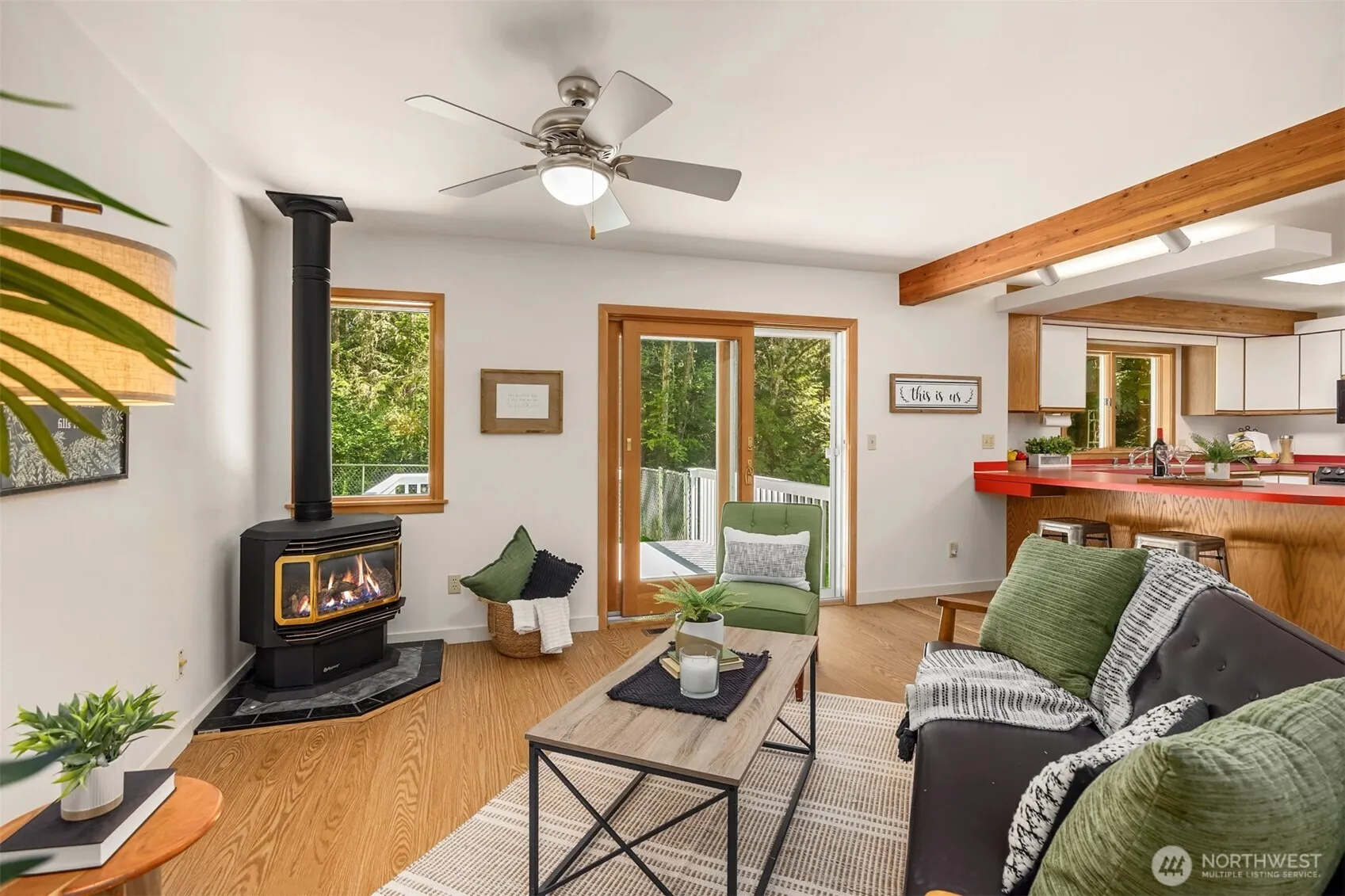 Tucked in the peaceful and historic Eglon community, this charming 2BR/2BA single story home on 2.66 private acres offers comfort, character, and room to grow. The light-filled living area flows into a spacious kitchen plus a dining room and a family room which provides flexibility for hobbies, guests, or work-from-home needs. Outside, enjoy mature trees, level lawn, and space to garden, roam, or relax in nature. Just minutes from Kingston ferries, shopping, and dining—yet worlds away in feel. Eglon Beach and the future Eglon Forest Park offer beach combing, wildlife, and trails. With a strong sense of community, heritage, and natural beauty, this home is a rare opportunity in one of Kitsap County’s most beloved rural enclaves.
