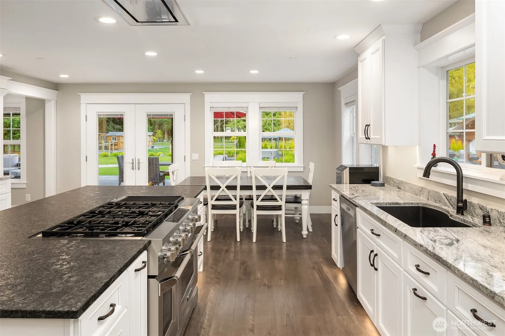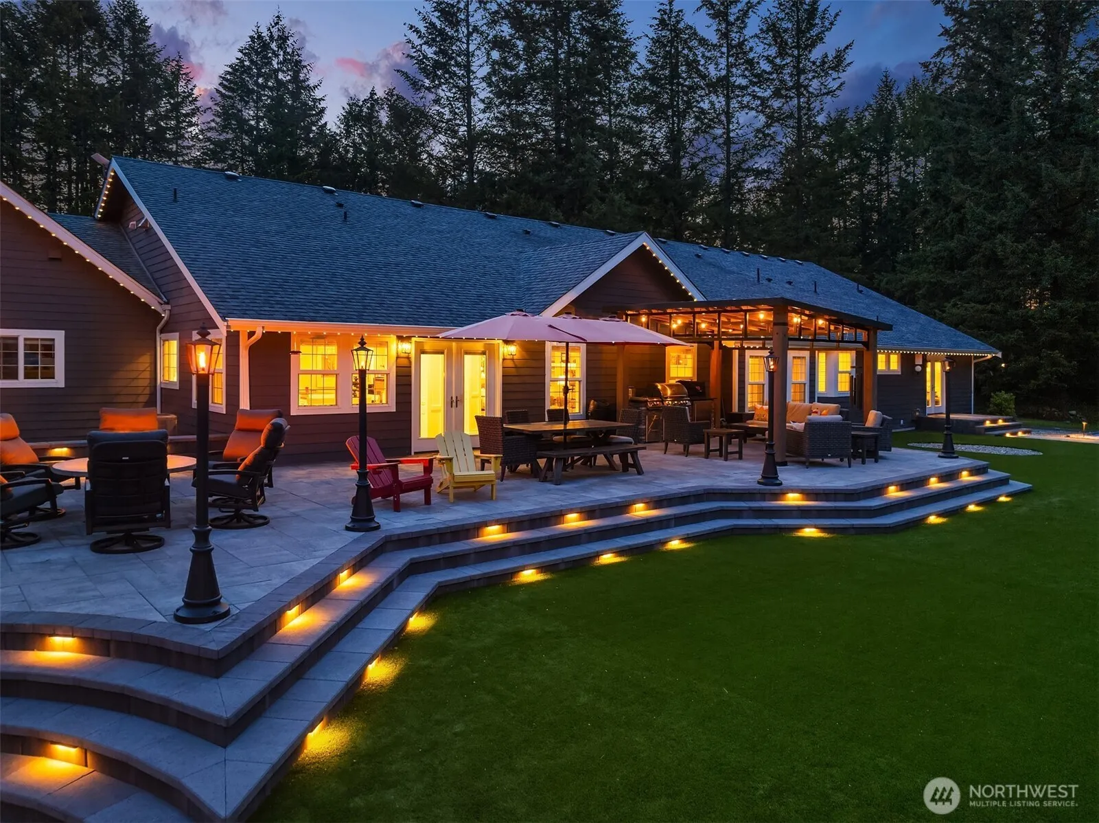 Live the ultimate resort lifestyle in this one-of-a-kind private estate in the woods. Located in the sought-after Eatonville schools, this beautifully updated home offers spacious one-level living w/vaulted ceilings, durable luxury vinyl flooring perfect for everyday living, and a gourmet kitchen w/walk-in pantry. The main floor features multiple living and dining areas, a luxurious primary suite, and all bedrooms on the main level. Upstairs, find a large bonus/game room. Step outside to an entertainer’s dream w/a heated pool and slide, sport court, hot tub, fire pit areas, and a stunning covered outdoor pavilion with TV and bar. A massive detached shop adds room for RVs and toys and whole-house generator makes living convenient year round.