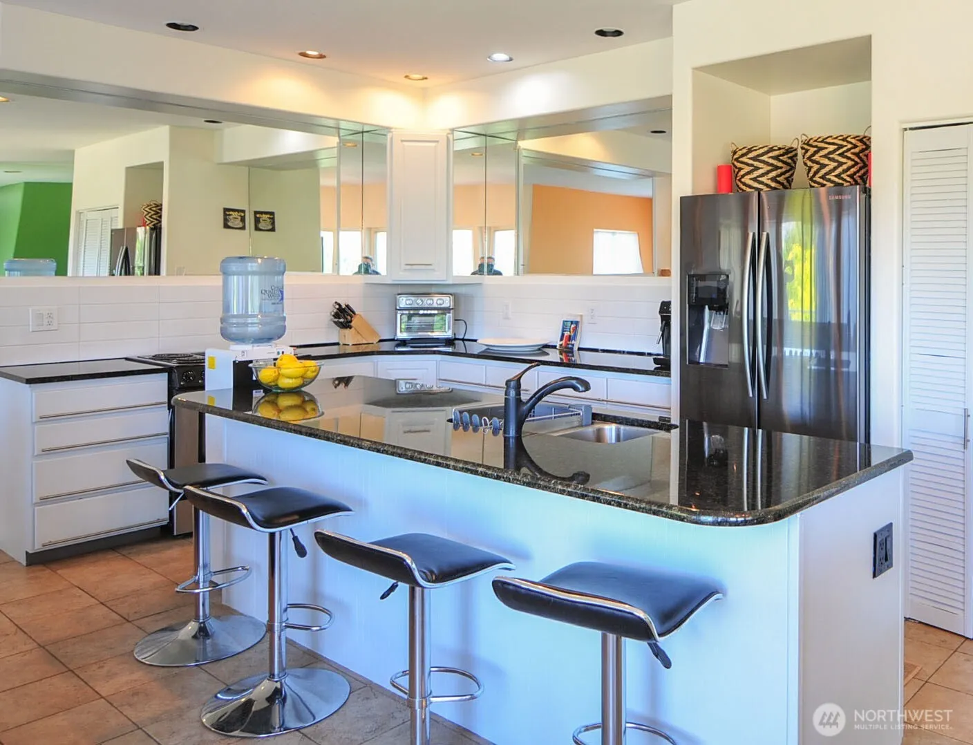 CREATIVE CUSTOM! Unique, Architect designed quality built home features wonderful views, an abundance of natural light and great separation of both indoor & outdoor space. Beautiful slate flooring and winding staircase greets you at the entry. The upper floor has a spacious living area off the light & bright kitchen with gorgeous granite counter-tops, stainless steel appliances, large eating bar and formal living & dining areas. Primary bedroom suite has stone counter-tops, vessel sinks, soaking tub, large walk-in closet and private deck. The lower floor has a perfectly located office/den just off the entry and 2 bedrooms with a Jack & Jill bathroom. Enjoy outdoor living with a low maintenance yard and multiple decks.