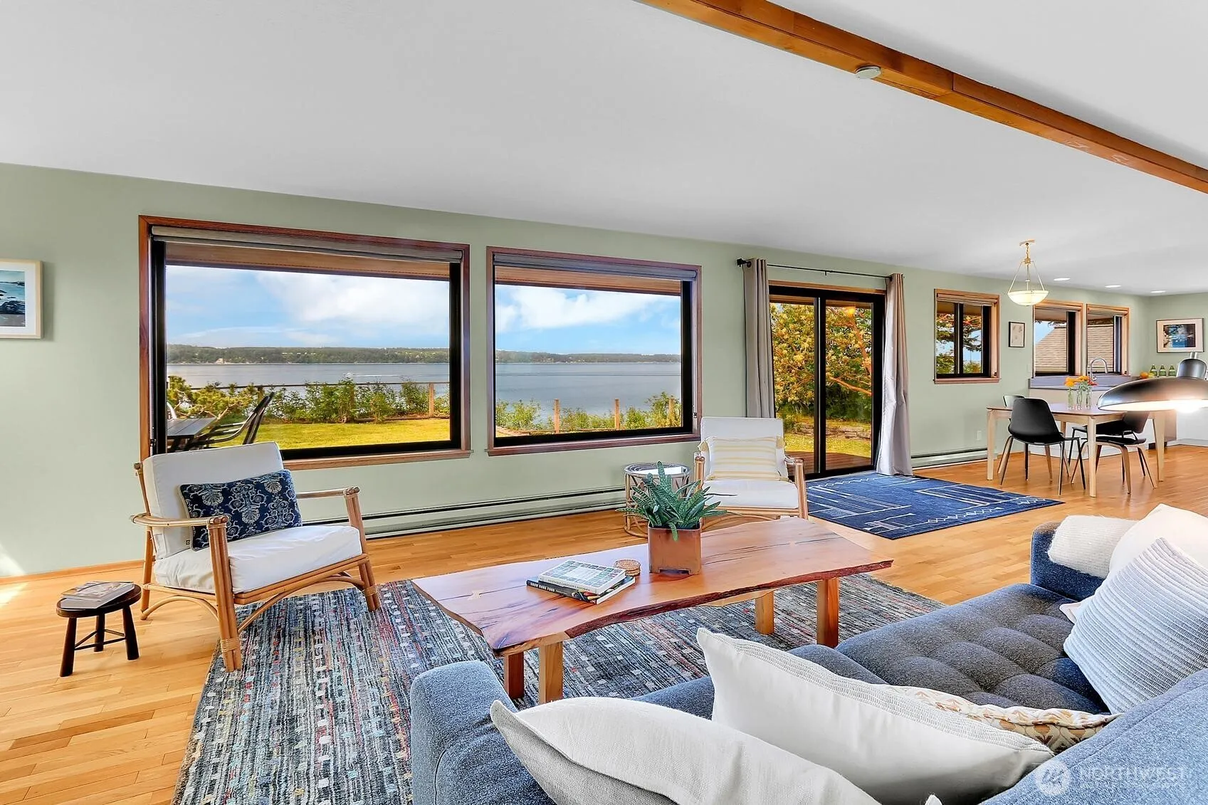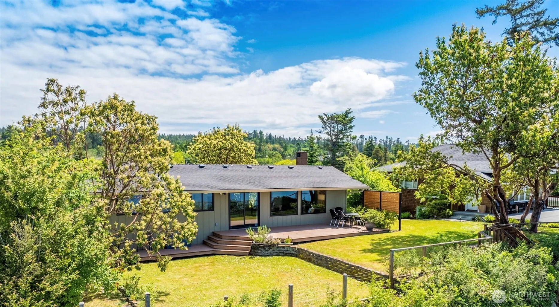 This west-facing waterfront property with coveted stairs to the beach is a classic example of mid-century modern with Camano style. Panoramic views of Saratoga Pass, Olympics, and sunsets. Whether it’s eagles, marine mammals, waterfowl or boat traffic there is always something to watch on Camano’s west side waterfront. Surrounded by thoughtful plantings, gardens and striking Madronas, this renovated home is located on a quaint street end with countryside to the east and saltwater to the west. Primary bedroom + additional guest room, and two baths. Designed to bring the outdoors in. Finish out the daylight basement to expand on the existing living space. Storage and firepit on top of the bulkhead for on-the-beach fun! Magical property!
