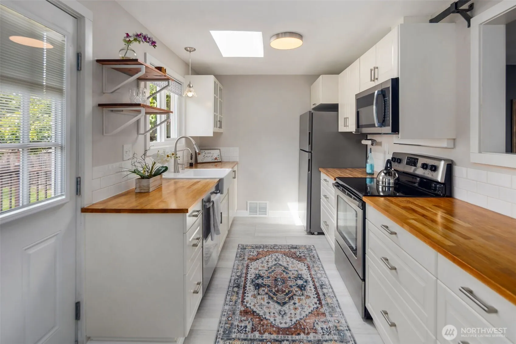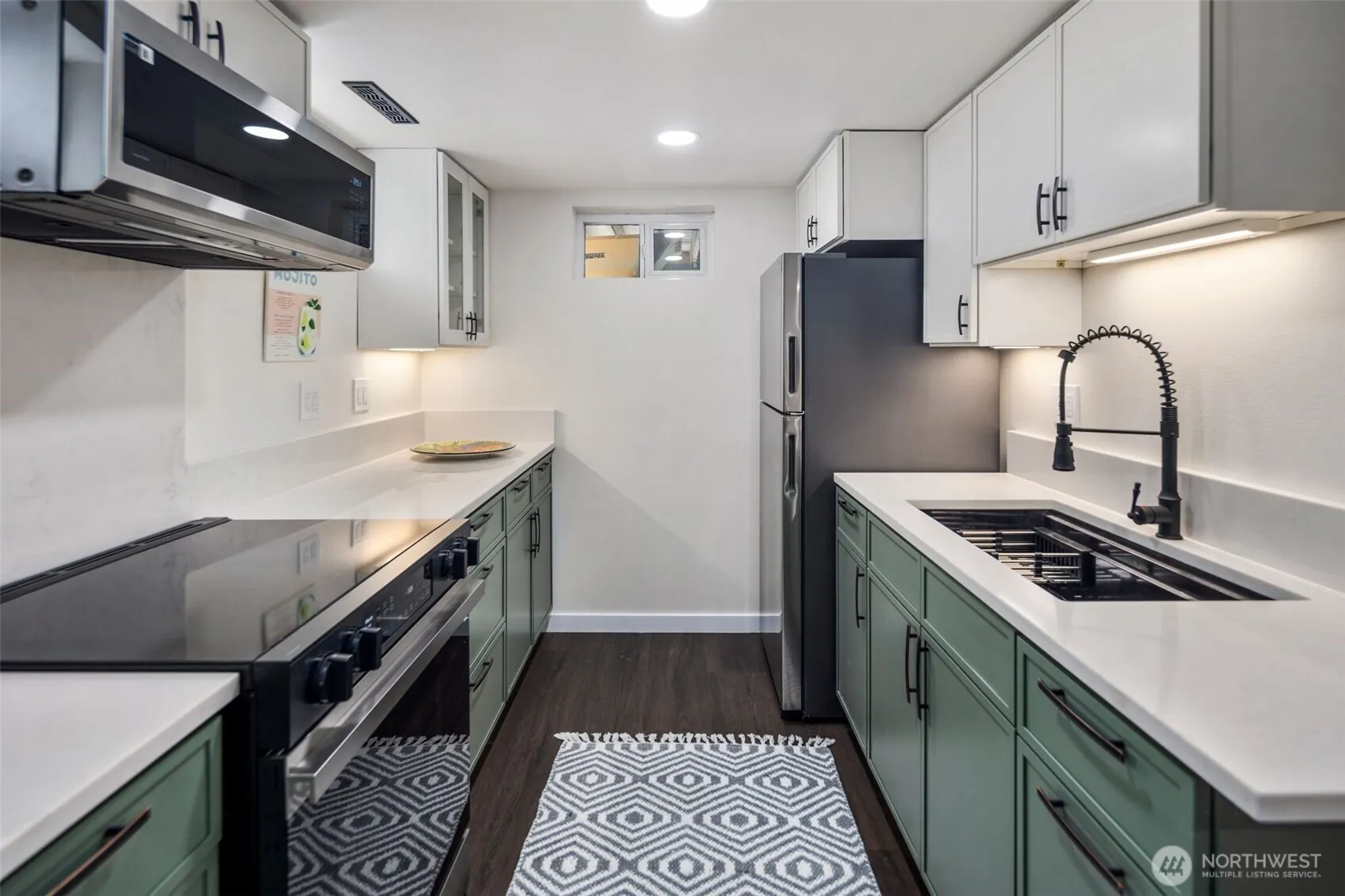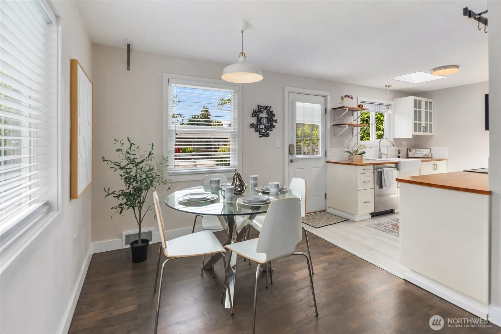 Minutes to Angle Lake w/Mother-In-Law unit, perfect for multi-gen living or rental income. On a Corner lot surrounded by matured trees and manicured gardens. Main living features 2BD, full BA, bright LR w/gas FP insert, original HW floors, dining, & kitchen overlooking manicured yard & patio w/stunning sunsets. Lower lvl offers 2BD, full kitchen, walk-in shower, LR, laundry, storage & separate entrance. Upgrades include vinyl plank in kitchens/baths, custom cordless blinds, updated fixtures, under-cab lighting, high-eff gas furnace, central A/C, & hardwired landscape lighting. 2019 roof & composite deck. Prime location. This Move-in ready house & just minutes from South Center mall, SeaTac Airport, I-5, Light Rail, schools, Angle Lake, YMCA