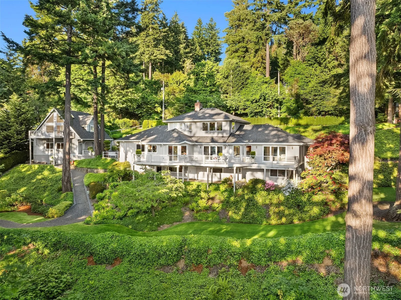 Singular Three Tree Point Estate. This-one-of-a-kind opportunity includes a custom 3-story home with primary suite on main, wiring/plumbing for basement ADU & full detached DADU. In total, this is a main home with a 2-car garage & detached garage with 2 very large garage bays (4 total garage spaces) + an apartment above. All stories in main home & apartment have territorial & Puget Sound views to the west. Other amenities: vaulted ceilings, extensive skylights, full length deck, built-in vacuum. Sq ft does not include garden shop accessed via the daylight basement. Don’t miss the large flat grass area. This is one of the most private estates you will ever tour. All you see is trees, the Puget Sound & a massive yard… all you hear is quiet.