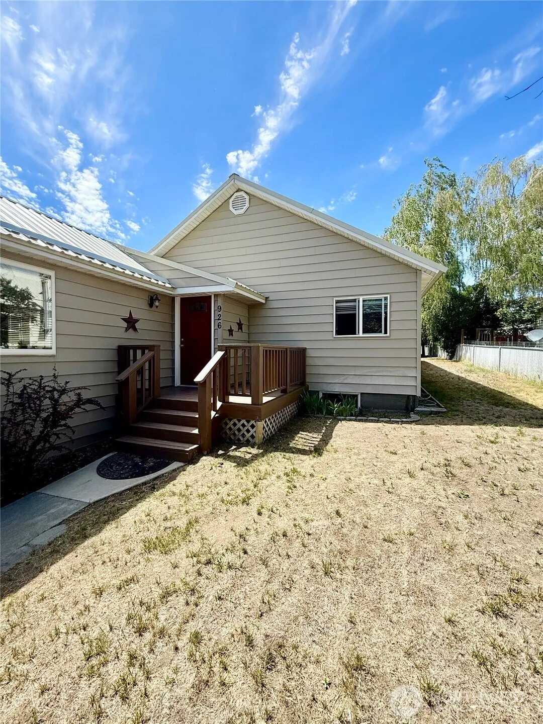 Okanogan-heart of town-premier location less than 1mile to all locations incl JC Park, IGA, VG/OHS, coffee shop, retail shops, public pool, & more! 2796sqft 2Bed/1.75Bath- full bath just remodeled. Open floor plan w/expansive LR & kitchen. Fridge/built microwave new. +Bonus rm w/built in cabinets surrounded by windows attract natural light. All rooms w/wood laminate floor – excellent condition. Front porch entryway or alley access w/ample parking, large covered patio, & double car detached carport. Mudroom/laundry w/built in storage. Large unfinished basement. 2 beautiful mature Norway Maple trees. Fully fenced w/sprinkler system & raised garden beds. All appliances stay. Metal roof & siding. City utilities. $270,000 MLS-2381478/H-3674