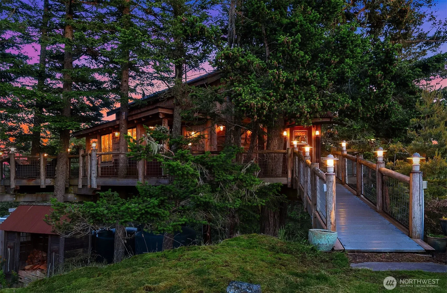 Featured on Ultimate Treehouses, the architecturally stunning estate is one of the most magical properties on Orcas Island. The main residence “treehouse” is supported by six massive Douglas Firs with high-end craftsmanship and design. The property is expertly landscaped with peaceful paths and gardens that lead to a storybook stone cottage and airstream, providing plenty of space for all your guests. Summer entertaining is a breeze with an outdoor kitchen, in-ground heated swimming pool and spa, and cabana. With both an art studio and a shop, every detail has been carefully curated to create a magical property for year-round enjoyment. A 5-BR septic gives you the ability to build upon this already impressive 30-acre property.