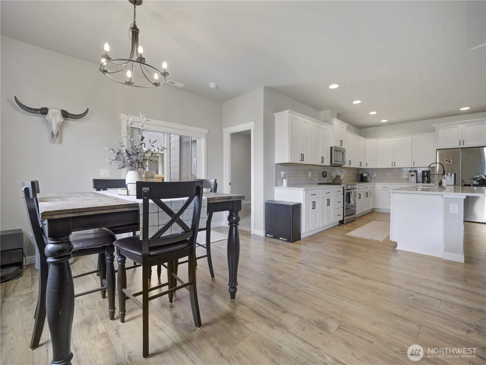 This beautifully 4-bed, 2-bath rambler offers the perfect blend of comfort, style, and functionality all on a generous, fully fenced lot. Step inside to an open-concept layout that seamlessly connects the living, dining, and kitchen areas—ideal for both everyday living and entertaining.The modern kitchen is a chef’s dream, featuring sleek quartz countertops, stainless steel appliances, and ample cabinetry. Relax in the spacious living area or step outside to enjoy the covered patio and professionally landscaped backyard, complete with an in-ground sprinkler system for easy maintenance. Energy efficiency meets convenience with a high-performance heat pump and an installed EV charger, making this home as smart as it is stylish. NO HOA.
