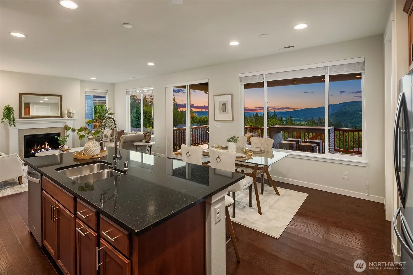 Enjoy stunning mountain and valley views from this beautifully maintained Pulte home, offering 4 bedrooms and 3 bathrooms in a thoughtfully designed open-concept layout, ideal for both entertaining and everyday living. Tucked away from the main living space, a generously sized main-floor office provides a retreat for work or study. The expansive primary suite features panoramic views and a luxurious walk-in shower. The daylight basement extends your living space and still takes in the views w/ full guest suite, bonus room, and walk-out patio perfect for multigenerational living or guests. Step outside with over $50k in mindful hardscape landscaping, including a custom fire pit—perfect for relaxing evenings under the stars. Welcome Home!