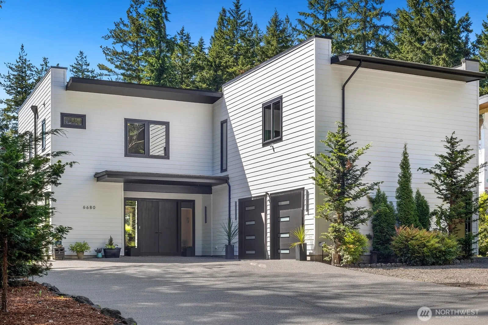 Nestled in a peaceful woodland setting on a shy-acre lot, this stunning home is a seamless blend of contemporary design and natural beauty. Mature shrubs and lush landscaping provide a sense of privacy and tranquility, while expansive windows bring the outdoors in. Four large bedrooms each have en-suite baths, including one on the main floor. The airy, open layout features clean lines, a huge bonus room, abundant storage, and luxurious primary suite with private deck. Recent updates like new siding/roof/carpet, backup generator, & EV-ready garage make this thoughtfully planned home better than new construction. Whether you’re relaxing indoors or out enjoying the cozy fire pit, this is a retreat where nature and modernity coexist in harmony.