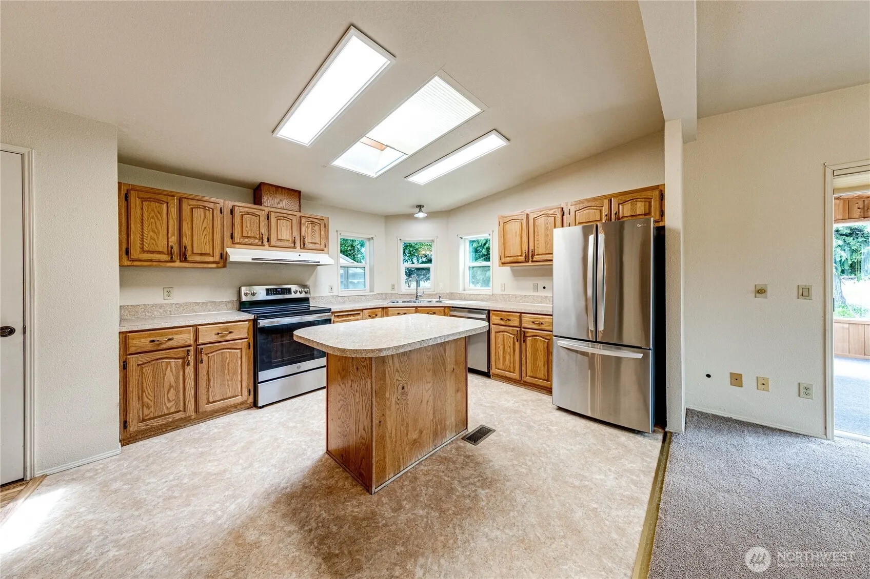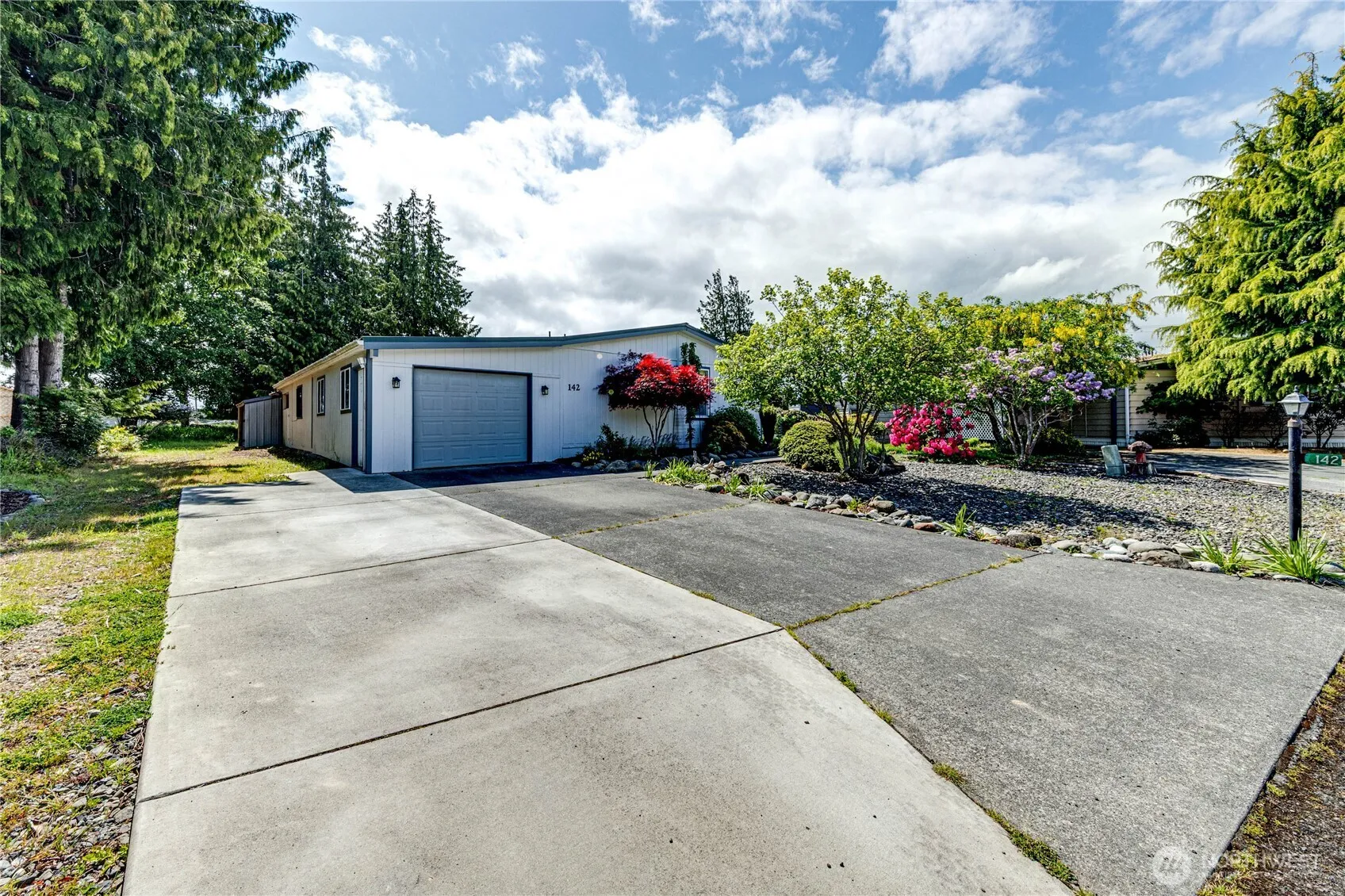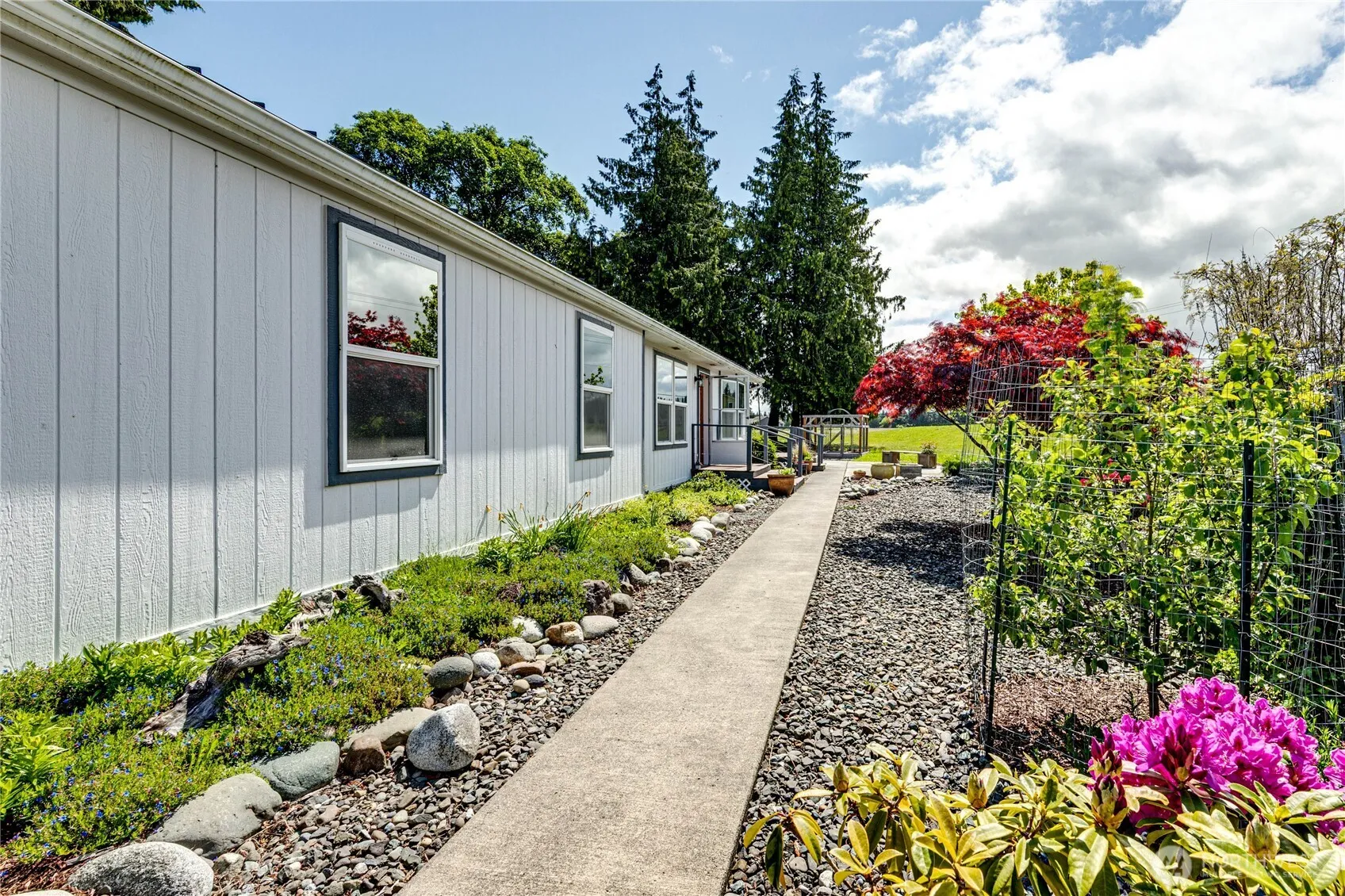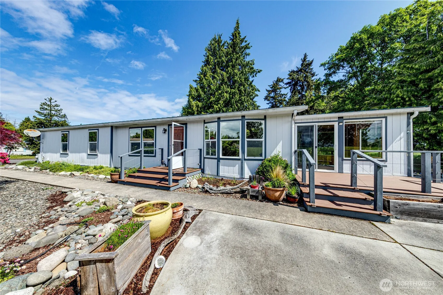 Experience highly desirable Monterra living in this spacious 1,704 sq ft, 2+bed/office (serviced by a 2-bed septic system), 2 bath home located in a serene 55+plus community with lots of activities planned monthly! Enjoy the open feel of vaulted ceilings. Open concept space has large living/dining room and a warm sunny attached sunroom for staying warm all year! Updated comfort with new carpet in the family room and bedrooms, new vinyl in both bathrooms. Home offers metal roofing and an attached metal garage with two covered outbuildings for extra storage or hobby room. There is a greenhouse and enclosed raised garden beds for the gardening enthusiasts. Relax on the patio surrounded by professional landscaping and Mountain Views!