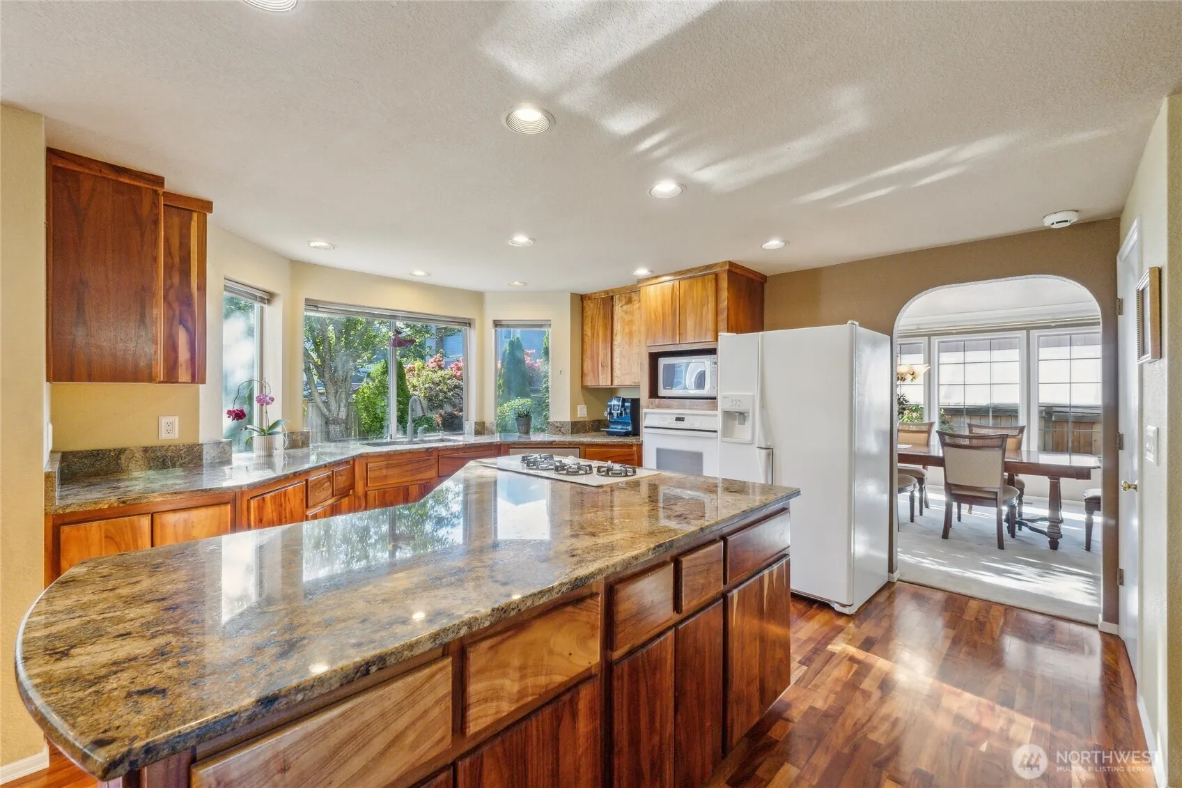 Discover timeless charm in this 4-bed, 2.5-bath University Place home on a .20-acre lot. The large open floorplan home boasts soaring, vaulted & oak beamed ceilings in the family room w/ floor to ceiling brick fp. Large kitchen w/ granite countertops & island, including a spacious breakfast nook w/ built in seating. Expansive formal living room w/ gas fp, formal dining room & office on the main. Upstairs find 3 generous bedrooms w/ built in desks, full bath w/double sinks & an oversized primary w/ gas fp & 5 pc bath including a jetted tub & walk in closet! Step outside to a beautifully landscaped, fenced backyard with a patio—perfect for play & entertaining. Ideally located just minutes from Drum Intermediate & top UP schools!