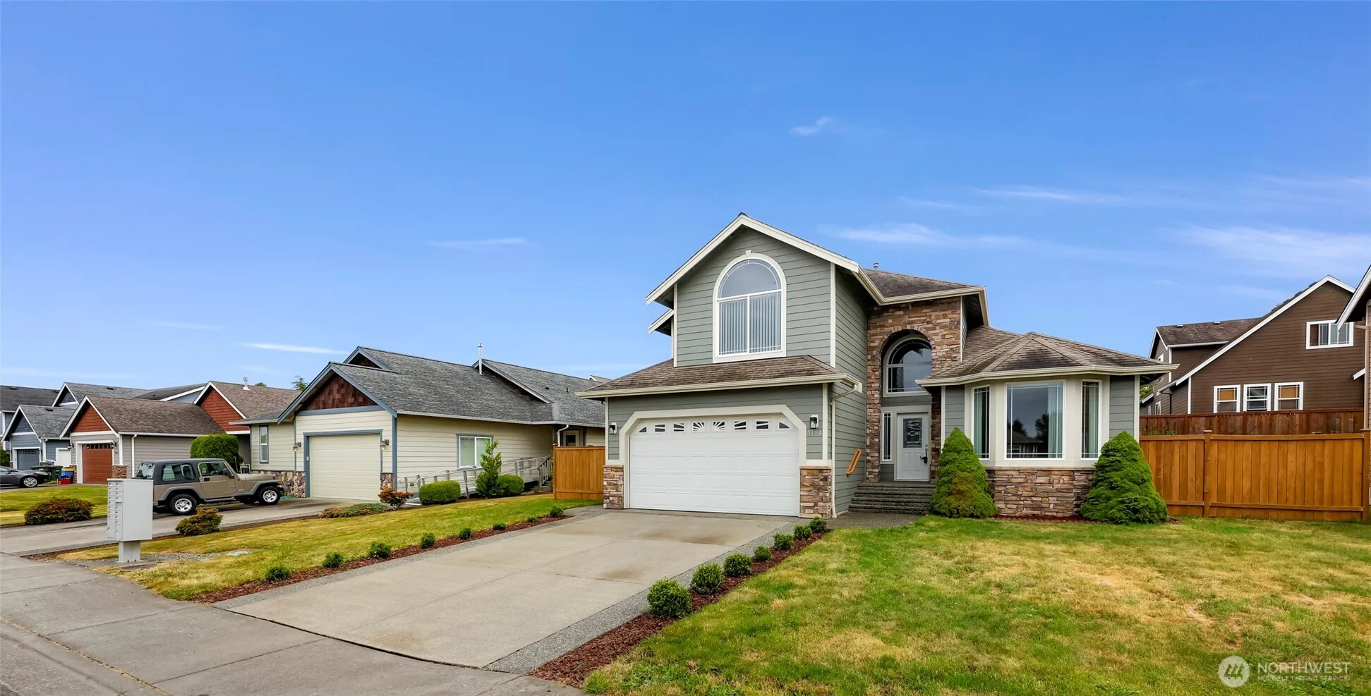 Beautifully maintained 4-bdrm, 2.5-bath home in LaBounty Estates. Offering 2,237 SF of comfortable living space, this home features a grand front entry, hardwood floors, gas fireplace & an ideal layout for everyday living. Main level includes a spacious living room, formal dining room & cozy family room just off the kitchen. Upstairs, the expansive primary suite offers a walk-in closet & luxurious ensuite bath with dual sinks, jetted tub & walk-in shower. Abundant natural light fills the home, creating a warm & inviting atmosphere. The exterior has been freshly painted & the large deck is perfect for outdoor entertaining. Fully fenced backyard includes shed & wide gate. Easy access I-5 & only mins to Ferndale, Bellingham & Hovander Park.