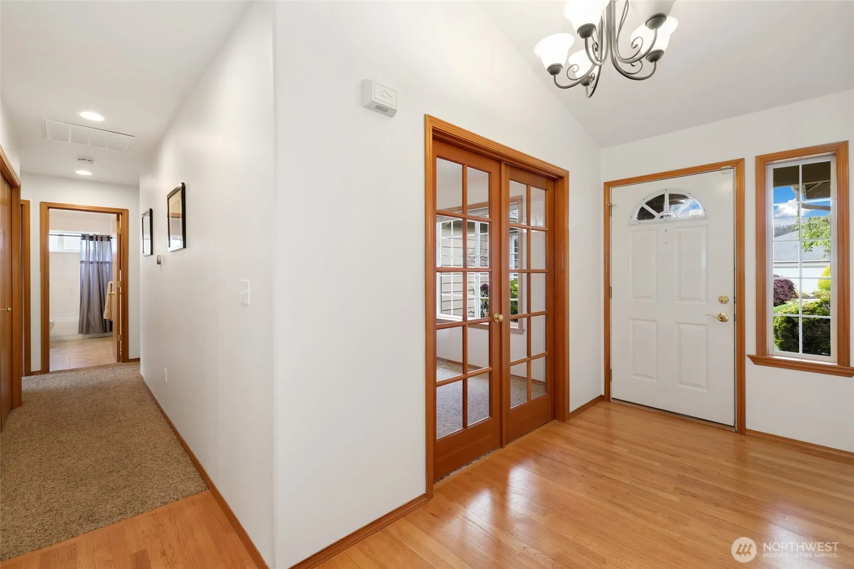 Charming 3-bedroom, 2-bath rambler in the desirable High Cedars Golf Course community! This home features hardwood floors in the entry, kitchen, and breakfast nook, solid oak cabinets, and a kitchen island with built-in desk. The versatile third bedroom includes French doors—perfect as an office or guest space. Enjoy central A/C, a gas fireplace, and wood-wrapped windows throughout. Step outside to a beautifully landscaped yard with cedar fencing, an entertainment-sized deck.This neighborhood features stunning views of Mt. Rainier. A rare opportunity in a peaceful, scenic neighborhood!