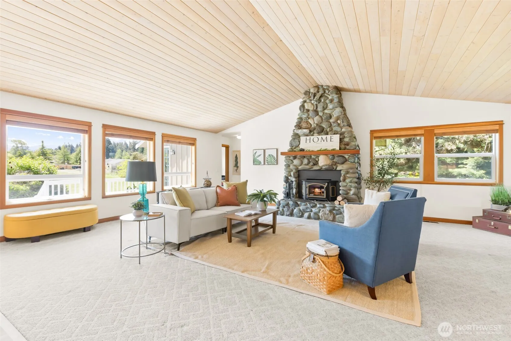 1.25-ac southfacing Mt View Retreat. Main floor living! 1 of Sequim Valley’s most sought-after neighborhoods—only 1 home on this street has listed in 5 years! This 2652sf home features vaulted tongue & groove ceilings, hardwood & a striking stone fireplace with rocks from the river. Private setting with no fussy landscaping but beautiful trees dot the property making yard work a breeze. The garden window is a great vantage for birdwatching—finches, hummers & woodpeckers visit the Birch trees, Fig, Apple, Plum, lilac & honeysuckles. All 3 bdrms have walk-in closets & ez access to the 500sf Deck. The lower-level has a private entry for office, creative space or flex rm. New heat pump, Waterheater & appliances 2022! New roof scheduled No HOA