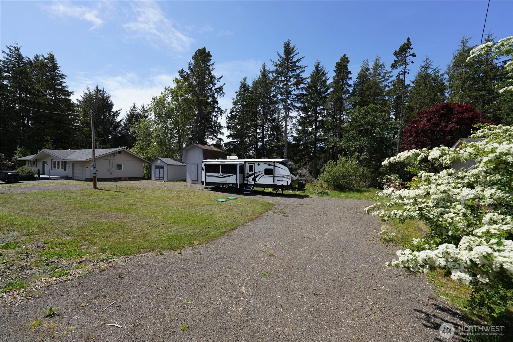 Fully developed RV vacation lot in Ocean Park, Washington. This 10,000 square foot lot has 3 RV hookups with 30 amp power, well water, and septic drops. Bring all of the crew, and their RVs, to this close to everything lot right between the bay and beach! Downtown Ocean Park is 1/2 mile away, the beach is about 1 mile away, and Nahcotta Bay is just around the corner. New pumphouse and well equipment. Nice shed for the beach toys. Also includes a tiny house with water, power, and septic. No HOA! Come see what a great vacation spot on the Peninsula can be! Barely used 2021 29 foot Cougar 29RLSWE RV has solar panels and is in like new condition and for sale outside of escrow for $42,000.