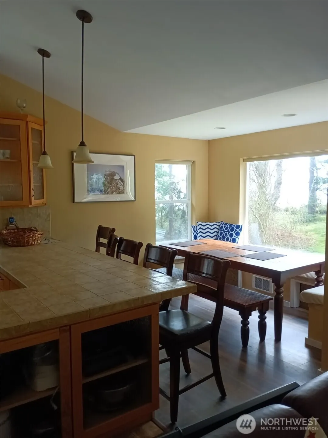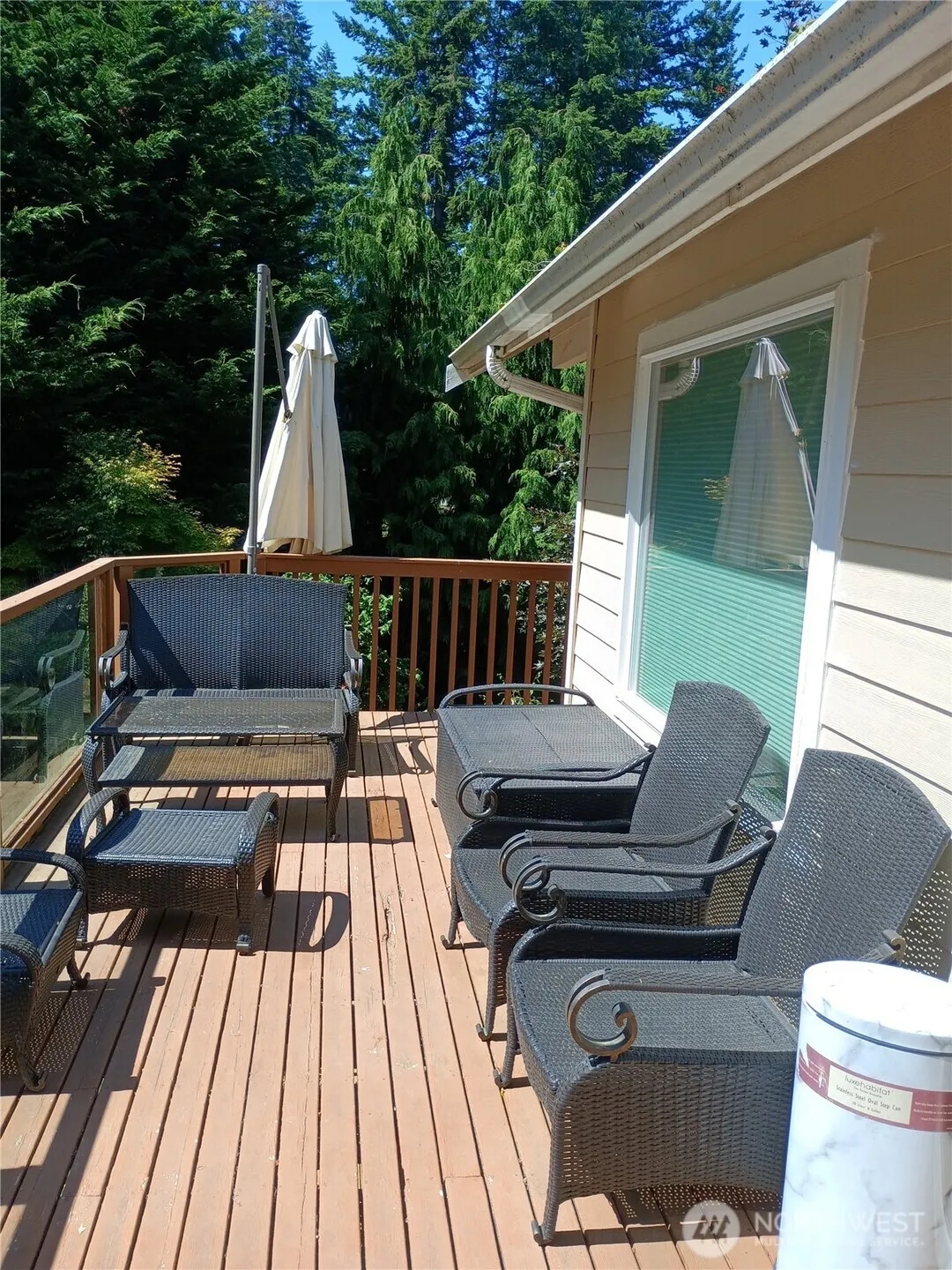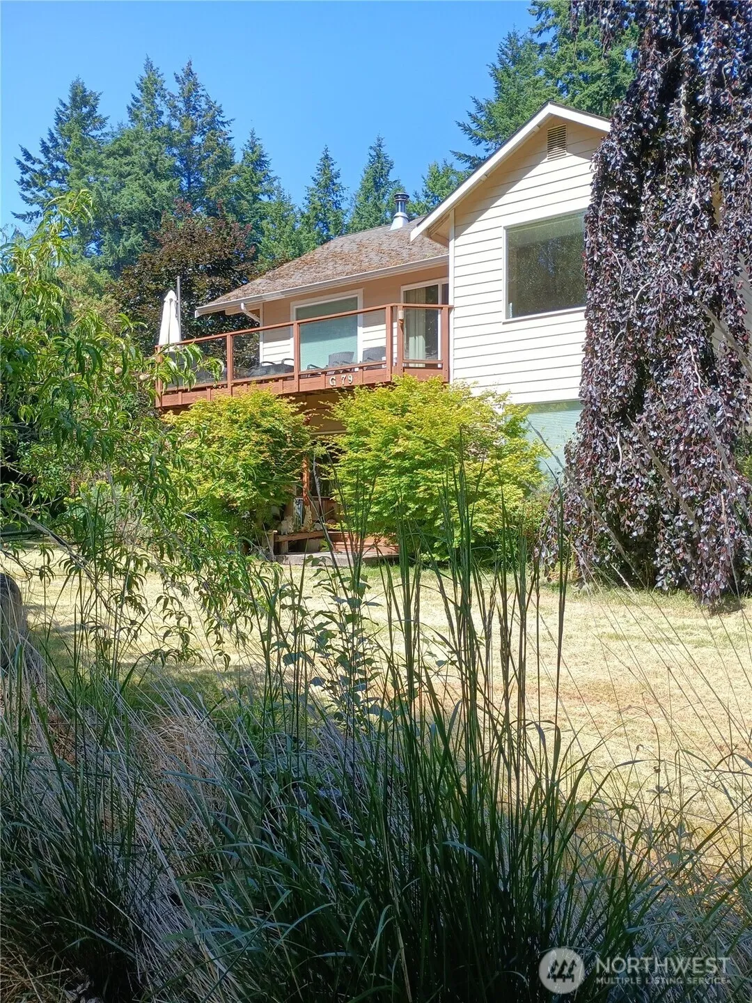 Stunning view home on South facing lot. Upper deck wraps around two sides. Views from most rooms. Wood stove in living room. Kitchen has large counters and cabinet space. Tiled main bath with separate shower. Quality furnishings throughout! Located in private island community five miles West of Everett. Ready to move in to, most furnishings stay. The bluff lot across the street is available to purchaser of home and comes with ATV, and car!