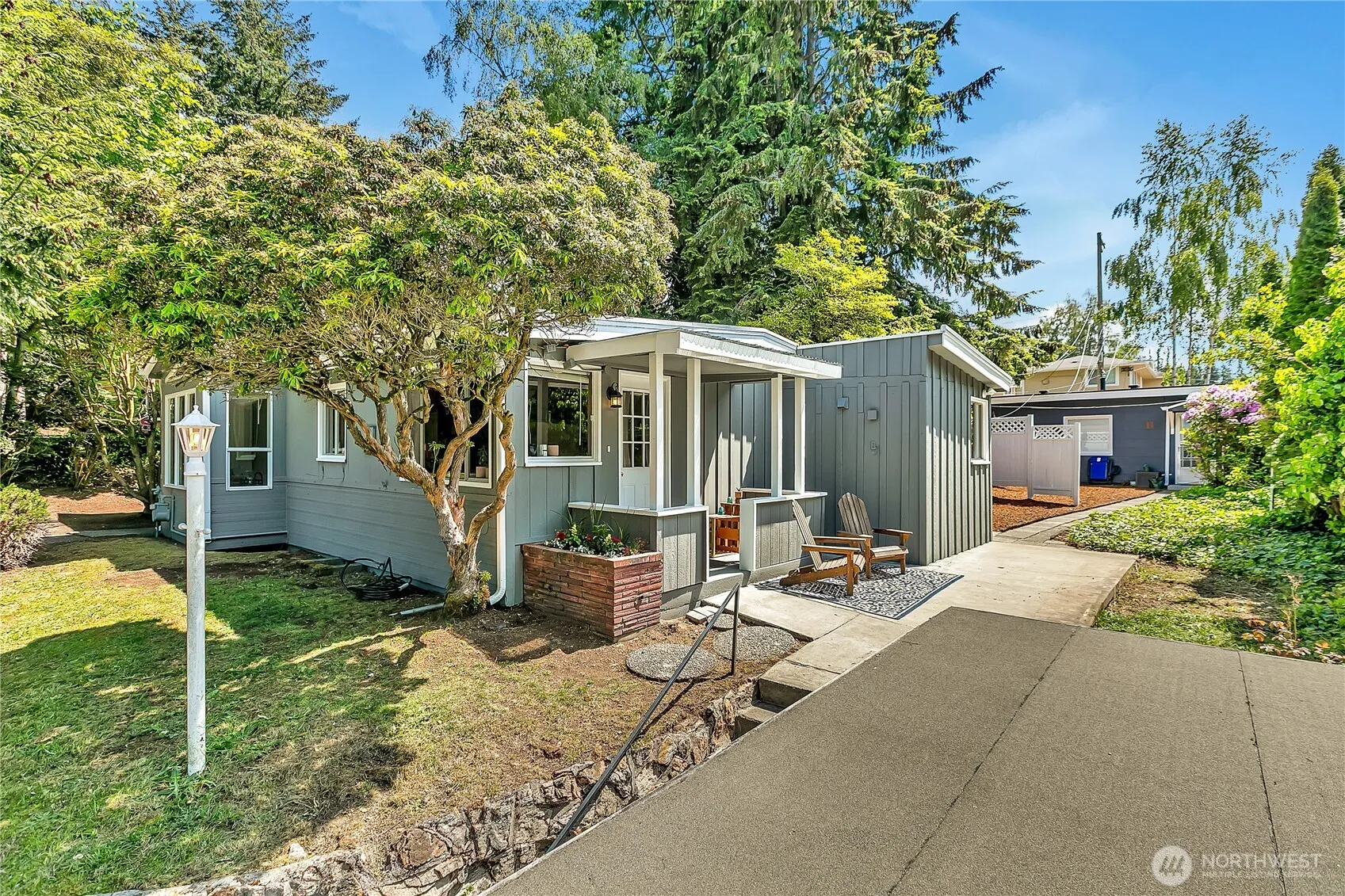 A rare opportunity in sought-after University Place! This charming 2-bedroom, 2-bath home & detached garage sit on a large 10,500 sq ft lot with the unique bonus of a 1-bedroom, 1-bath cottage, which can generate rental income covering up to 25% of your mortgage! The property is tucked away on a quiet street with a peek-a-boo view of Puget Sound & Narrows Bridge. Enjoy cozy evenings by the wood-burning fireplace or relax on the covered porch in this serene setting.Prime location – just minutes from award-winning schools, Whole Foods, Trader Joe’s, Chambers Bay Golf Course, restaurants, parks, and recreation make this home a perfect blend of comfort and convenience.Home & garage have new roofs; all new exterior paint. All appliances stay.