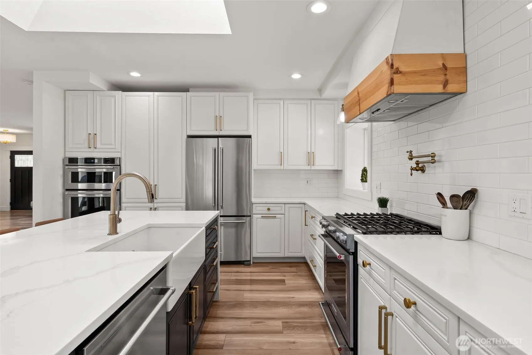 This beautifully updated rambler blends high-end design with everyday comfort in a peaceful neighborhood in the heart of Edgewood. The show-stopping kitchen is fully remodeled with luxury finishes, custom cabinetry, and top-of-the-line appliances—perfect for entertaining or quiet nights in. Step outside to a spacious, fully fenced backyard with a dedicated play area, private courtyard, and room to relax or host. With all living on one level and thoughtful updates throughout, this home offers both ease and elegance in a serene setting.