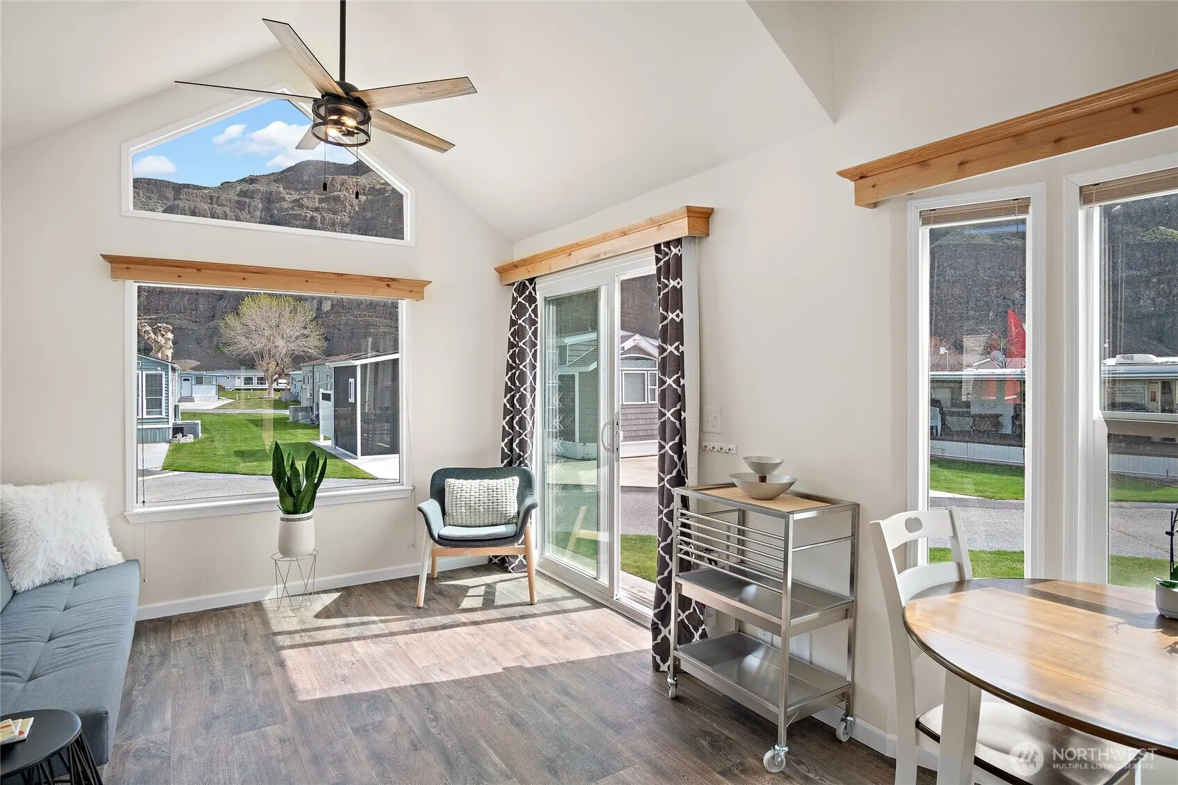 Welcome to your new Crescent Bar home with views of the majestic basalt cliffs, just steps from the back channel swimming hole. This light and bright unit features 700 sq ft with 1 bedroom, 1 bath, large sleeping loft, full kitchen with eating area and living room with vaulted ceilings. There is an additional shed with washer/dryer hookups, and new heat pump with central AC and heating. Monthly HOA dues include water, sewer, garbage, landscaping and maintenance. CB features year around recreation w/2 boat launches, gas dock, golf course, and 3 seasonal restaurants, and 30 minute drive to Gorge Amphitheater.