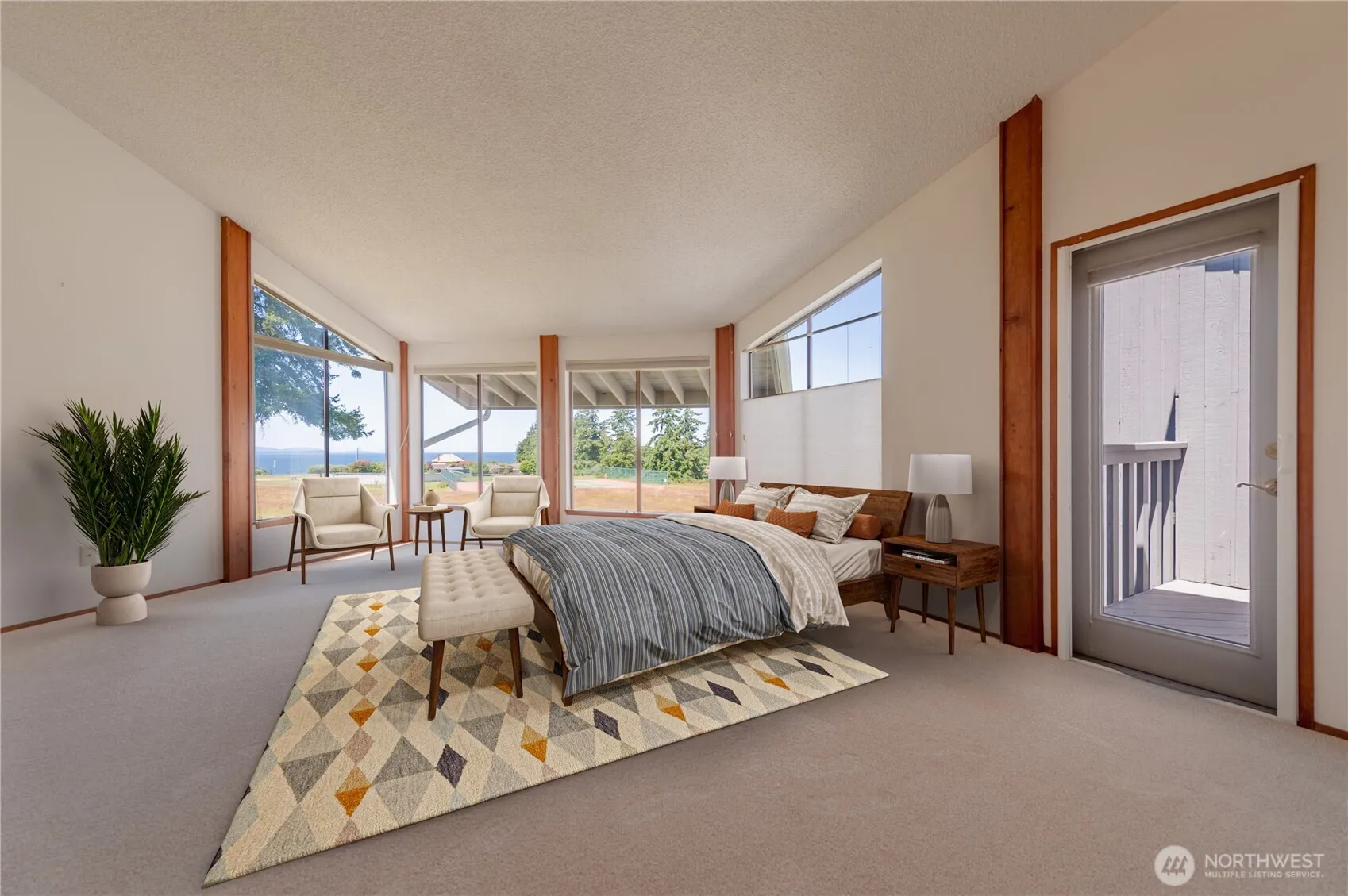 This beautiful Meadow side condo (approved for long term rental) is ideally located to capture lots sunlight and spectacular views of the San Juans islands. The second floor boasts extended living space, featuring a primary bedroom with water views, fireplace, sitting area, spacious walk-in closet and an en suite bathroom. Additional highlights include a two-car garage with outlet for EV charging and Trex deck off the living room perfect for enjoying views of majestic Strait of Georgia. Nestled on 22acres of meadows and forest the residents have a beautiful private beach just a short walk away. Enjoy amenities including tennis court and basketball court, making this the perfect retreat for relaxation/recreation. Seller Financing available