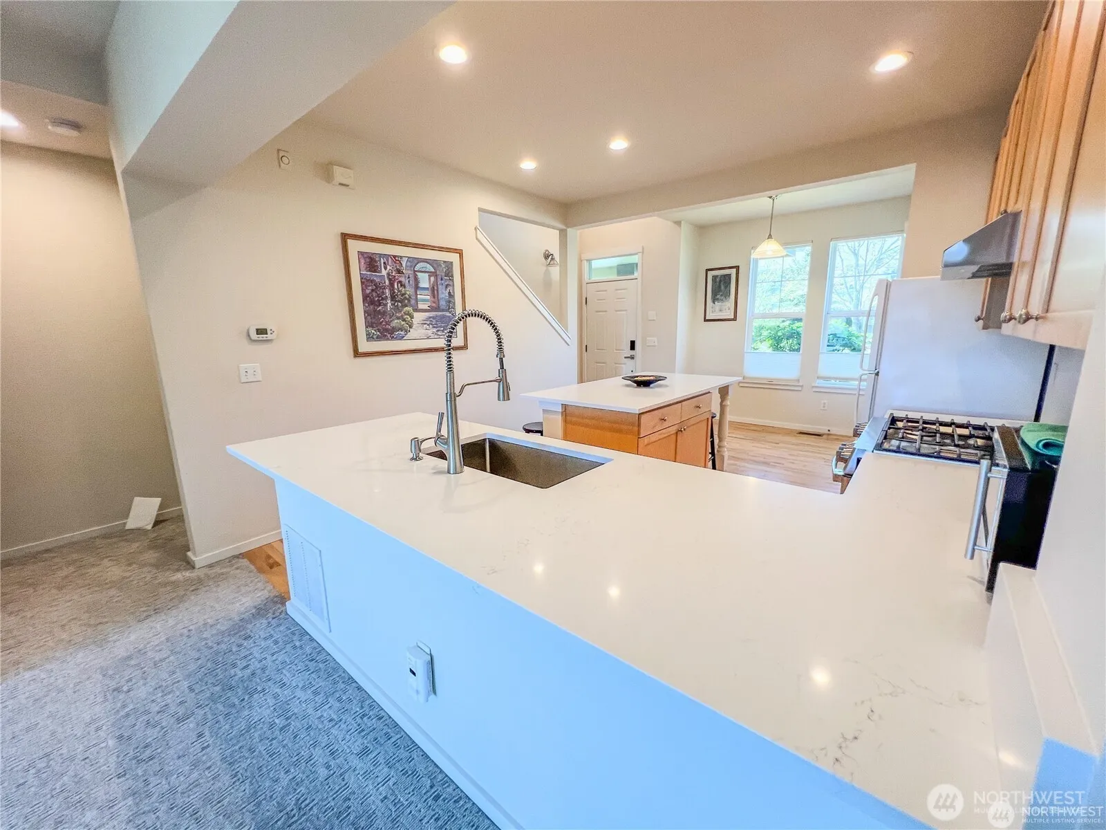 Beautifully maintained 2-story townhouse in the heart of Snoqualmie Ridge with stunning views of the Cascade Mountains. Vaulted front entry leads into a modern kitchen with quartz countertops, stainless steel appliances, and large island with seating. Main floor open concept living area including kitchen, living/dining area with gas fireplace, and a mountain-facing balcony. Top level includes spacious master bedroom with mountain views, a second sizable bedroom, both with ensuite bathrooms and walk-in closets. A versatile bonus room on the lowest level – perfect for a roomy home office, recreation room, or potential 3rd bedroom. Low maintenance, incredible views, amazing walkability to dining, shopping, parks, trails.