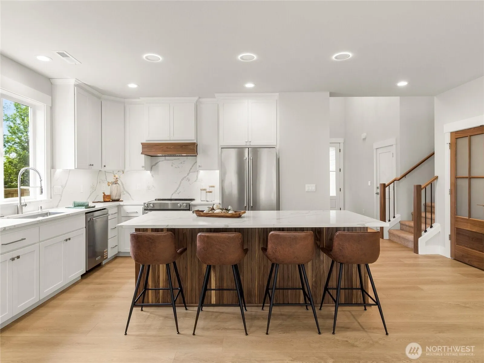2025 New Construction! 4 bed 3 bath 2600 SF home on 0.29 Acres on a dead end road in Buckley! This custom-built home includes Primary bedroom on main with custom en-suite and WIC. Custom Cabinets with Walnut Accents throughout, Custom Millwork and Barn Door, LVP throughout main areas, Open concept Kitchen/Living/Dining, Granite for all countertops and backsplash. Kitchen comes with all SS appliances to include Refrigerator and Beverage Cooler. Details include 2 phase can lights for day/night option, undercabinet lighting, vaulted ceiling, fully fenced backyard, all landscaped areas irrigated, Heat Pump/AC, Extended Patio for outdoor enjoyment, wired for generator, and more!