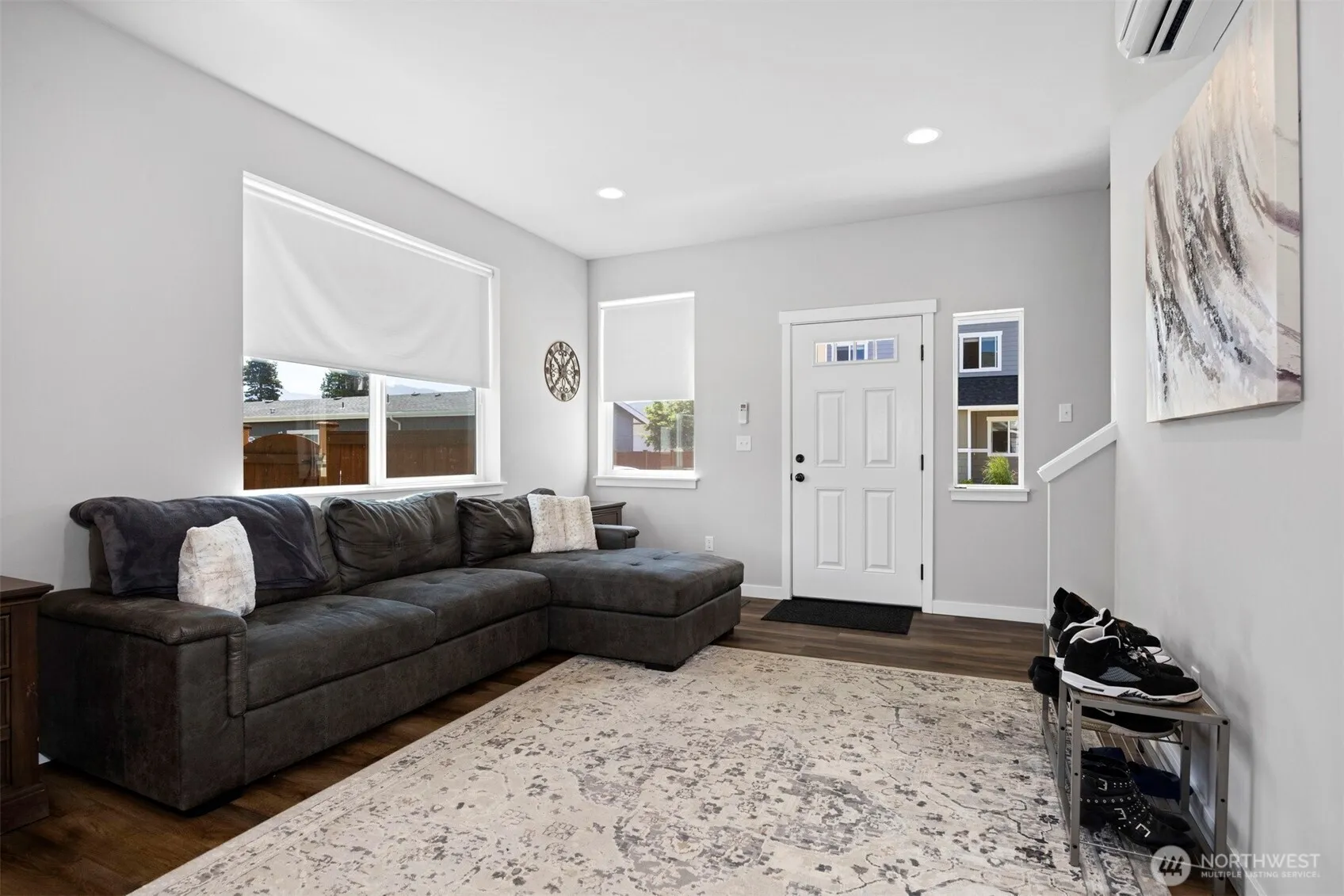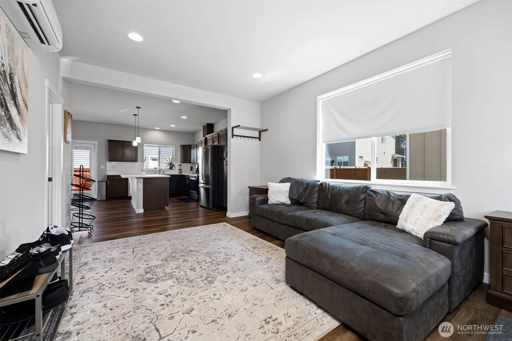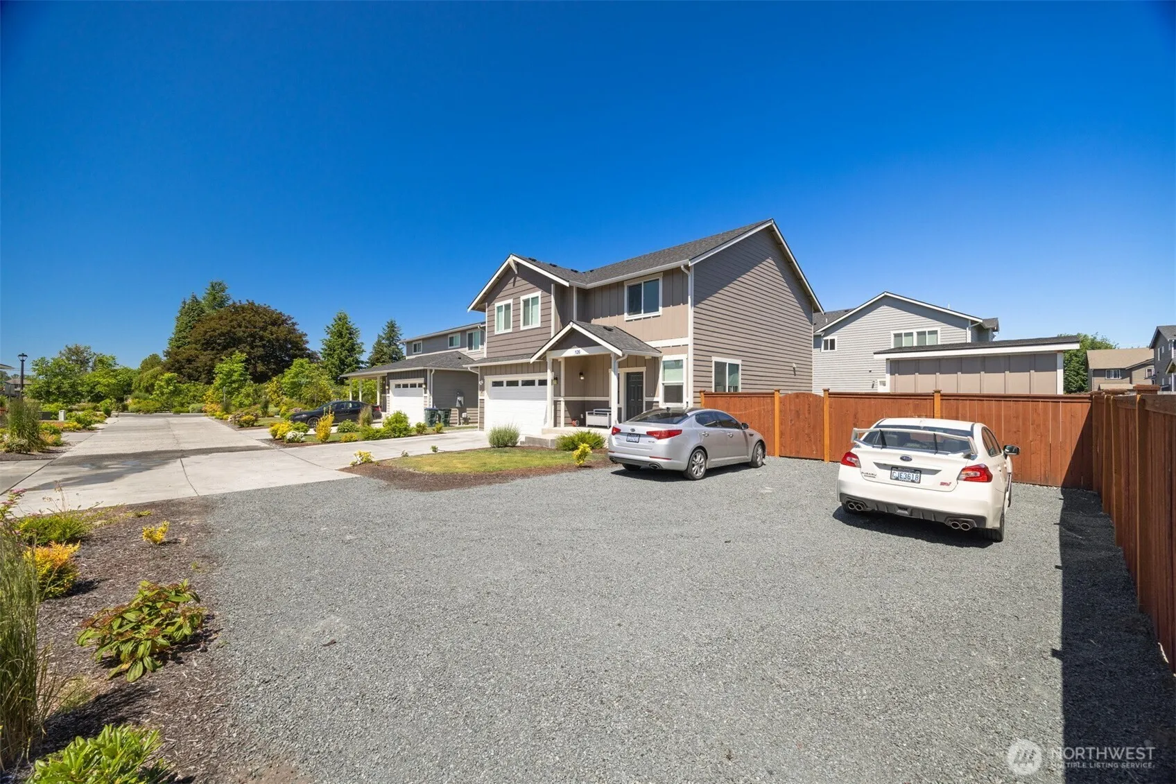 Beautiful 4-bedroom, 2.5-bath home in desirable Garden Meadows! This two-story features an open-concept great room with a cozy gas fireplace and durable LVP flooring that flows through the living, kitchen, and dining areas. The modern kitchen includes quartz countertops, a subway tile backsplash, stainless steel gas range, micro-hood, and dishwasher. Enjoy year-round comfort with ductless mini-splits for heating and A/C. Upstairs utility room adds convenience. Exterior highlights include cement siding, a gas BBQ hookup on the covered back porch, fully fenced and landscaped backyard, storage shed, two-car garage, and extra gravel parking. Garden Meadows offers great amenities including a playground, basketball court, and picnic area.