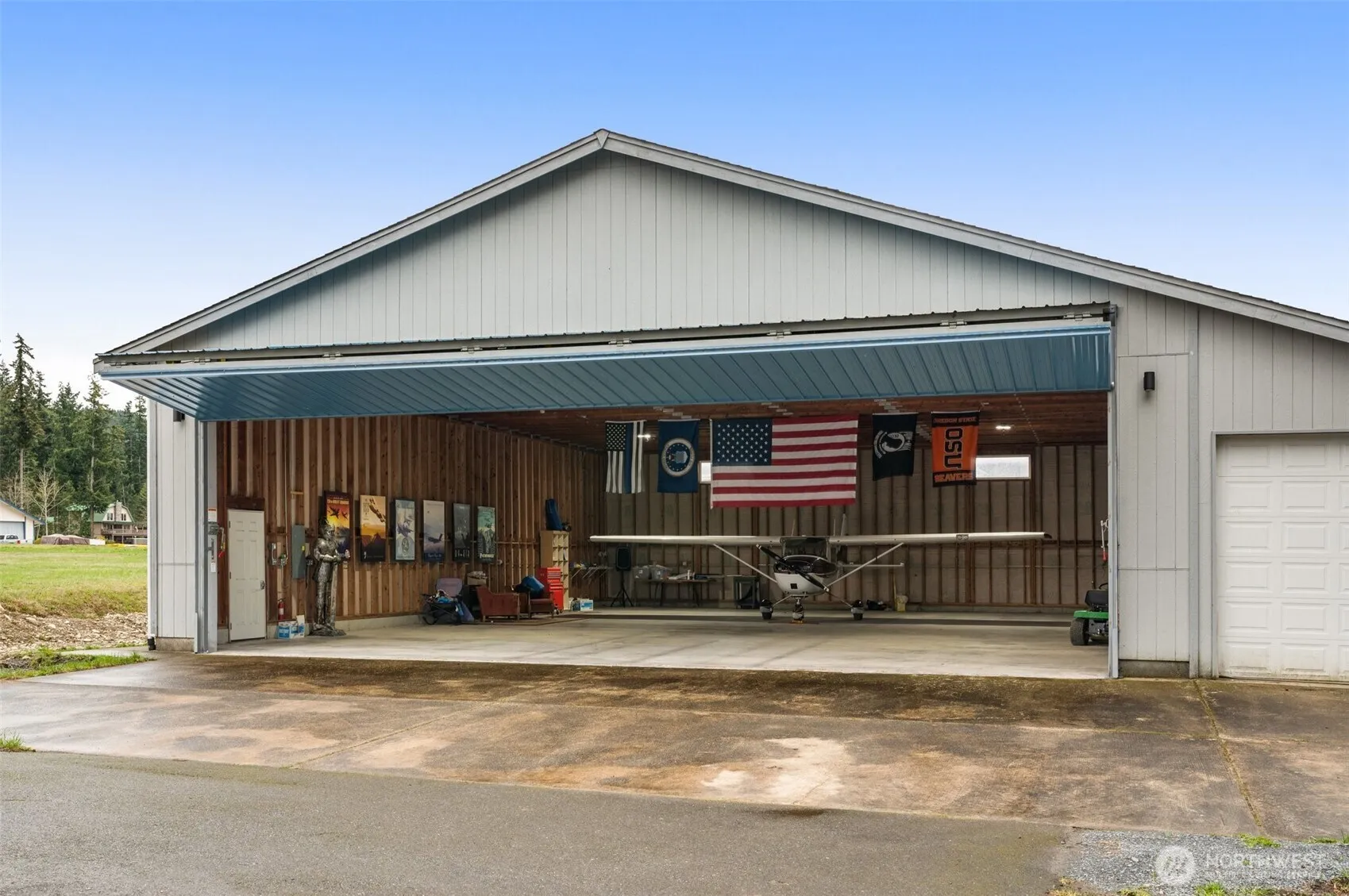 Eatonville Hangar with Buildable Lot ! Aviation enthusiasts and investors—here’s your chance to own a 46’x60′ hangar at Eatonville (2W3) with the unique option to build a home next to it! 40’x12′ hangar door and a spacious 14′ interior ceiling, providing ample clearance for aircraft storage. Power already on-site and sewer & water available at the road. Additionally, a separate storage/garage area offers a 9’x10′ wide door, perfect for extra storage, vehicles, etc. With no CC&Rs, you have the freedom to customize the space to fit your needs. Whether you’re a pilot looking for a personal hangar, need a large shop, or want to develop your home-and-hangar setup, this property offers endless possibilities.