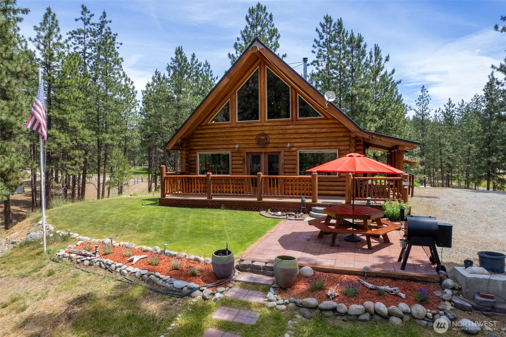 Beautiful log home on approx. 1.47 ac. AC Deck overlooks Crumbacher Lake. Fully fenced gated yard with many soaring trees for shade. Huge, detached shop/garage wired for welding. Two RV hookups one by the gate with water and power and on by the shop with water, power and septic. Storage shed. Firepit to enjoy cool evenings with friends.