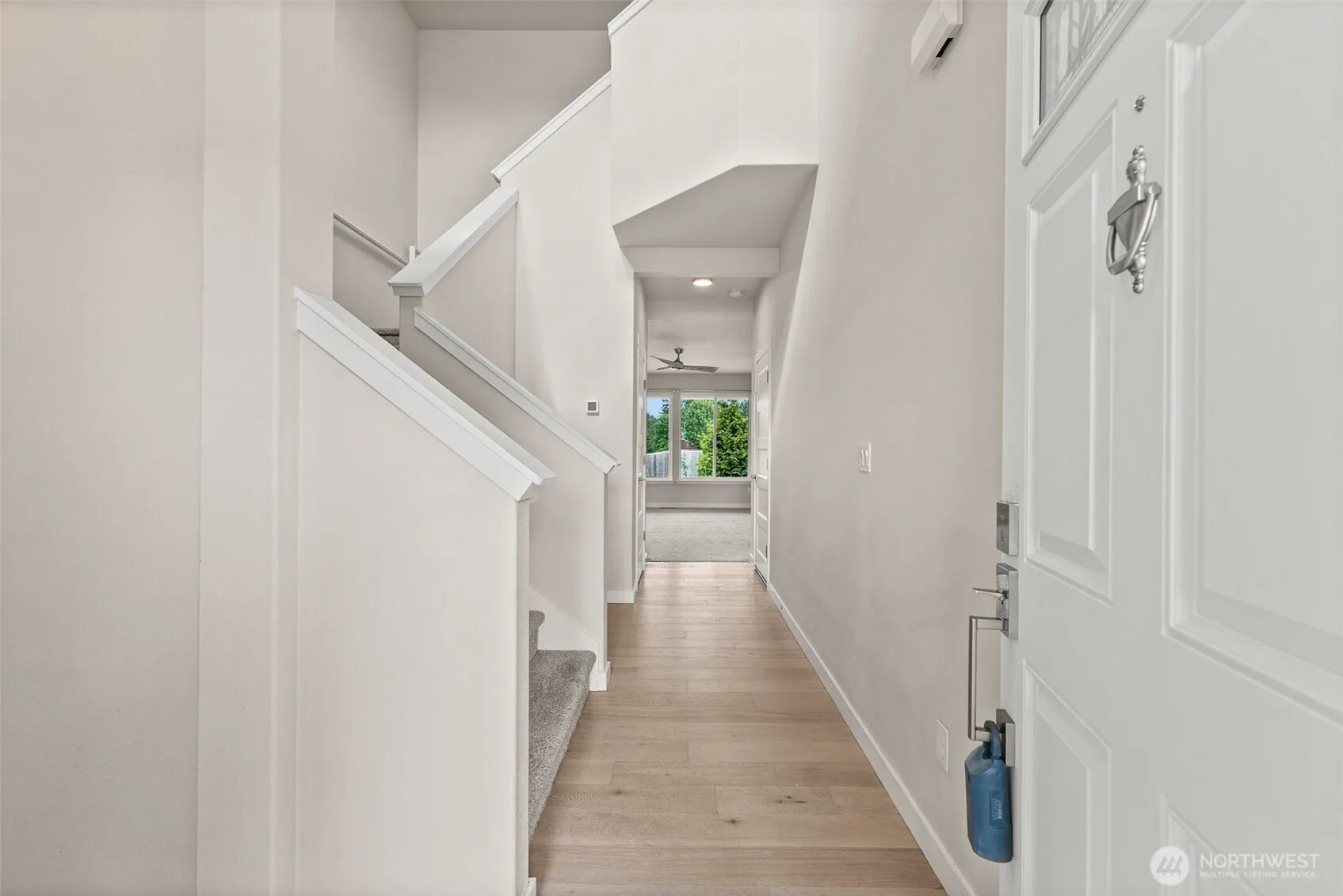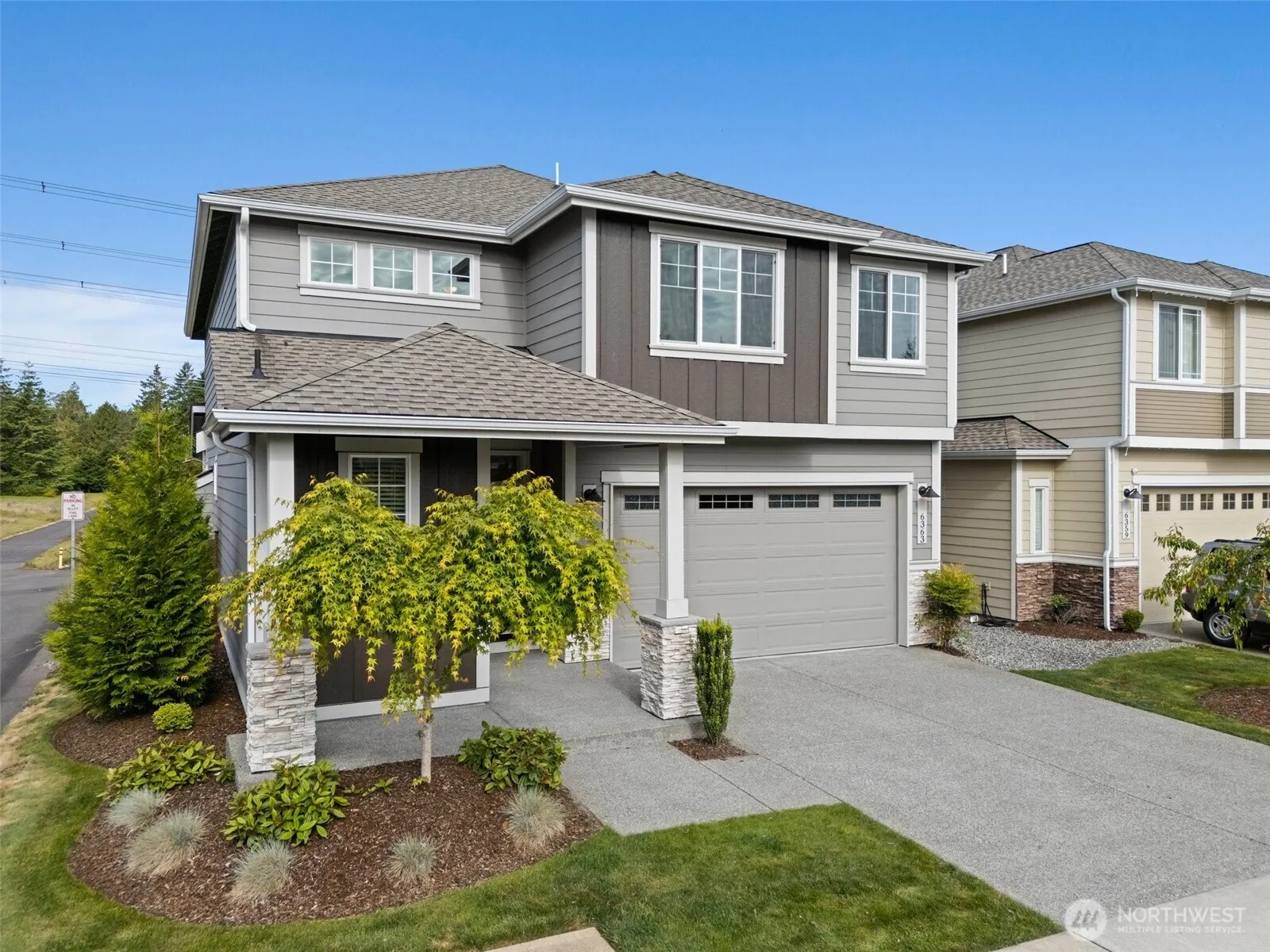Stylish & Spacious in Kirsop Crossing! This 4-bed, 2.5-bath offers 2,182 SF of well-designed space. Kitchen features Beech Seadrift shaker cabinets, quartz counters, full tile backsplash, island with eating bar, and gas range with convection oven—open to dining and living with gas fireplace and ceiling fan. Hardwood floors in entry, kitchen & dining. Primary suite with walk-in closet and 5-piece bath. Three more bedrooms, including oversized fourth ideal as bonus or media room. Contemporary finishes, brushed nickel fixtures. Fully fenced backyard with covered patio. Front yard sprinklers that are HOA maintained. Tankless water heater, 2-car garage. Desirable Tumwater location near parks, schools, shopping & playground!