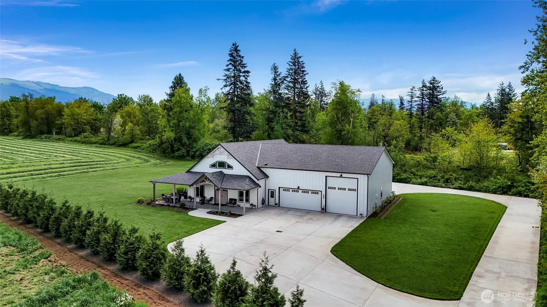 Custom single-level home with zero-step entry, ADU & dream shop! Gated sanctuary on just over an acre. Open-concept living with ZLINE appliances, copper sinks, double oven, barista counter, built-in wine fridge & more. Primary suite with spa-like ensuite & steam shower, plus two guest rooms & clawfoot tub. Covered outdoor living with indoor/outdoor fireplace, TV, hot/cold exterior faucets & irrigation. 2,100 sqft insulated/heated shop with 14′ door, RV hookup, 220, utility sink & space for 10 vehicles. ADU above shop with full bath, accessed via garage or private entry—ideal for guests, rental, or office.