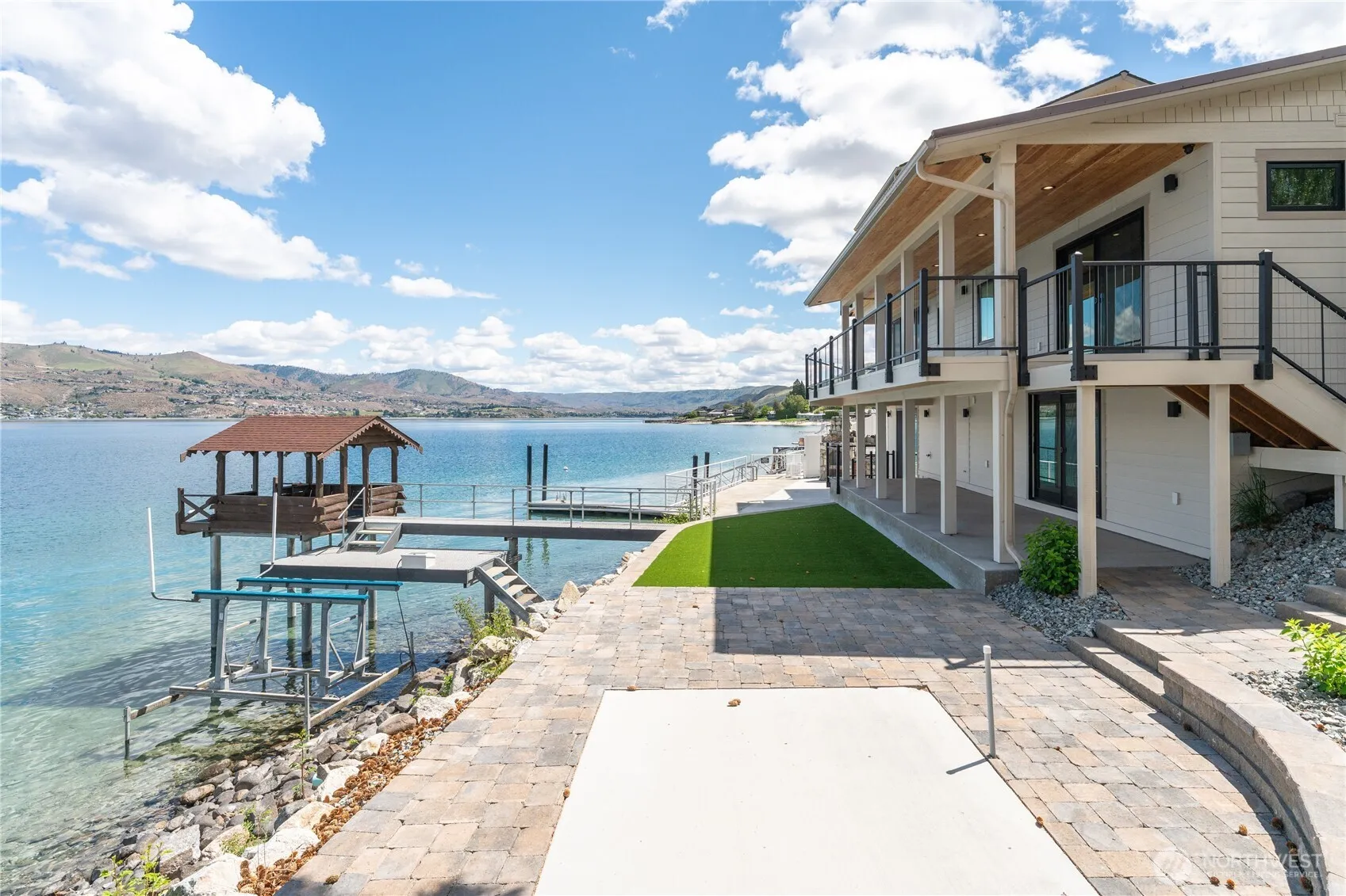 Stunning & newly rebuilt Waterfront home on Lake Chelan’s prestigious Golden Mile! Over 5,100sq’ of luxury living w/ high-end finishes throughout—quartz counters, tile floors, gorgeous window/door package, high quality cabinetry, shiplap walls, walk-in pantry, & restored original stone fireplace. Featuring 5 beds, 6 baths, bonus room w/ wet bar, spacious open concept kitchen & great room, & thoughtfully designed layout! Enjoy extensive outdoor living, paver walkways, covered decks & patios, hot tub pad, gorgeous landscape & mature pines. New dock, boat lift, 2 buoys, & structurally refinished rare & historic “cabana” over the water. Prime location just 4 miles from downtown, close to Bear Mt Golf, & walking distance to numerous wineries!