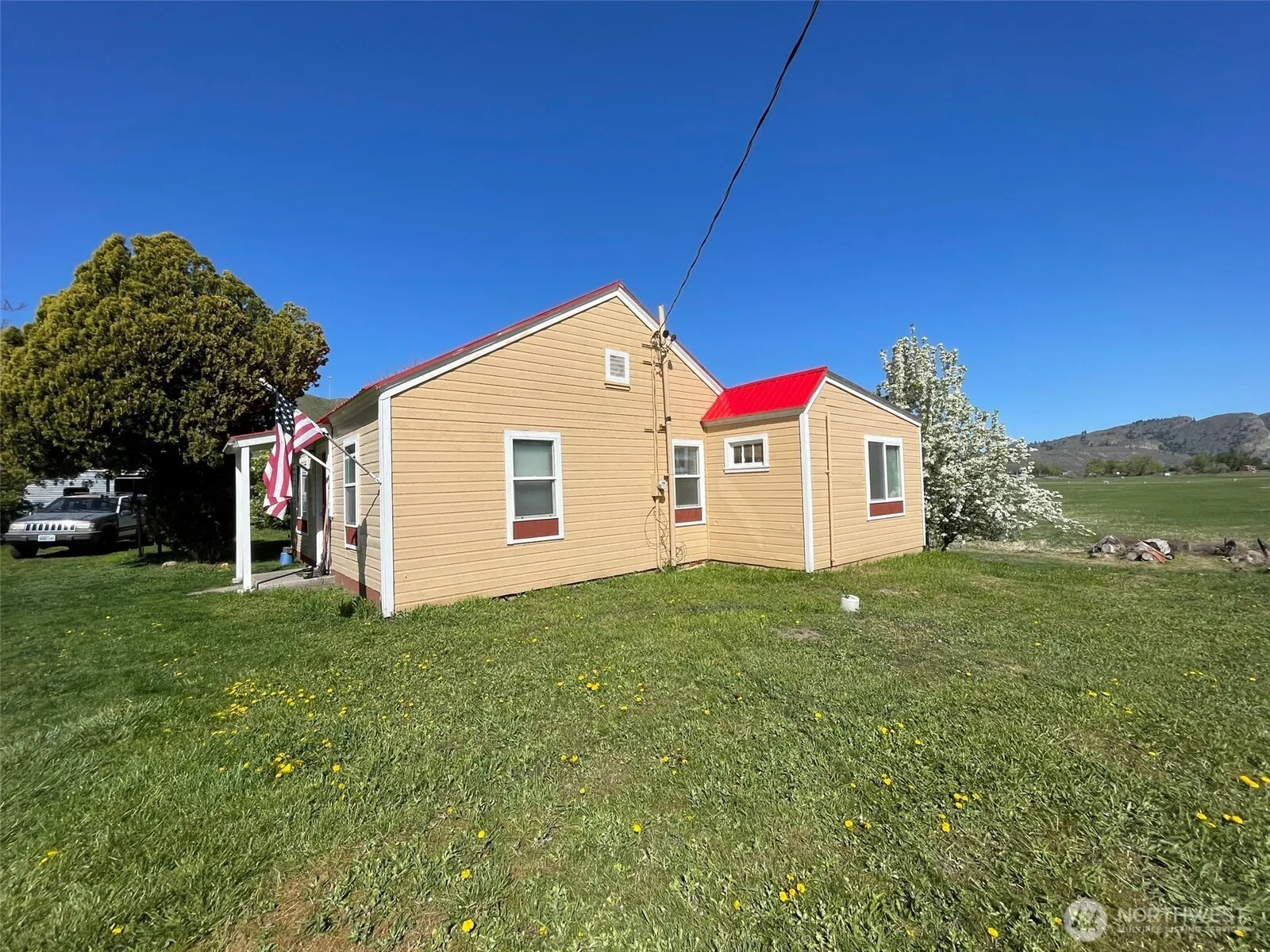 Cutie freshly painted 3 bedroom 1bath cottage in the quaint rural town of Riverside. Large deck with views of surrounding valley and mountains room for BBQ and Hot Tub. Garage and shop with lots of room for vehicles and tools. Refrigerator, stove, washer and dryer are included. Storage basement also has easy access from in the house. Plenty of room to add a garden to the pear and apricot trees that are on the property. Great investment for the first time home buyer or to use as a rental asset property.