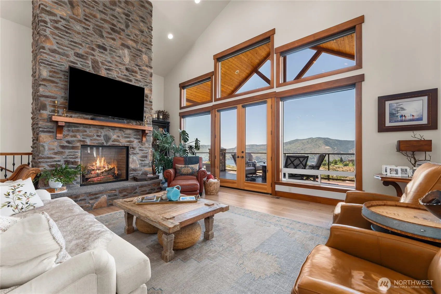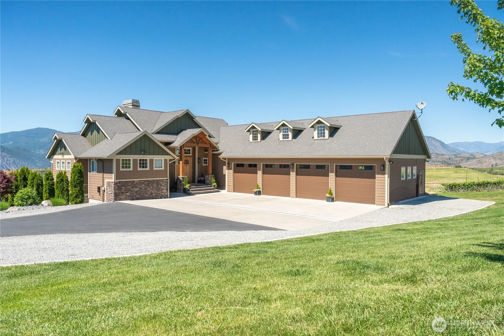 Discover a rare opportunity to own a stunning four-bedroom, three-bath home nestled on 12 pristine acres overlooking the breathtaking Chelan Valley. This beautifully maintained estate offers expansive lake and mountain views, luxurious amenities, and an unparalleled sense of privacy, just nine minutes from the heart of downtown Manson. The property features a swimming pool with a covered pool lounge area, covered hot tub on the lower patio, four-car garage, manicured lawn, and multiple outdoor entertaining areas. Enjoy a serene, park-like setting just 9 minutes from downtown Manson. Spacious floor plan, abundant natural light, and luxurious outdoor amenities make this a must-see property. Ideal for year-round living or a vacation retreat.