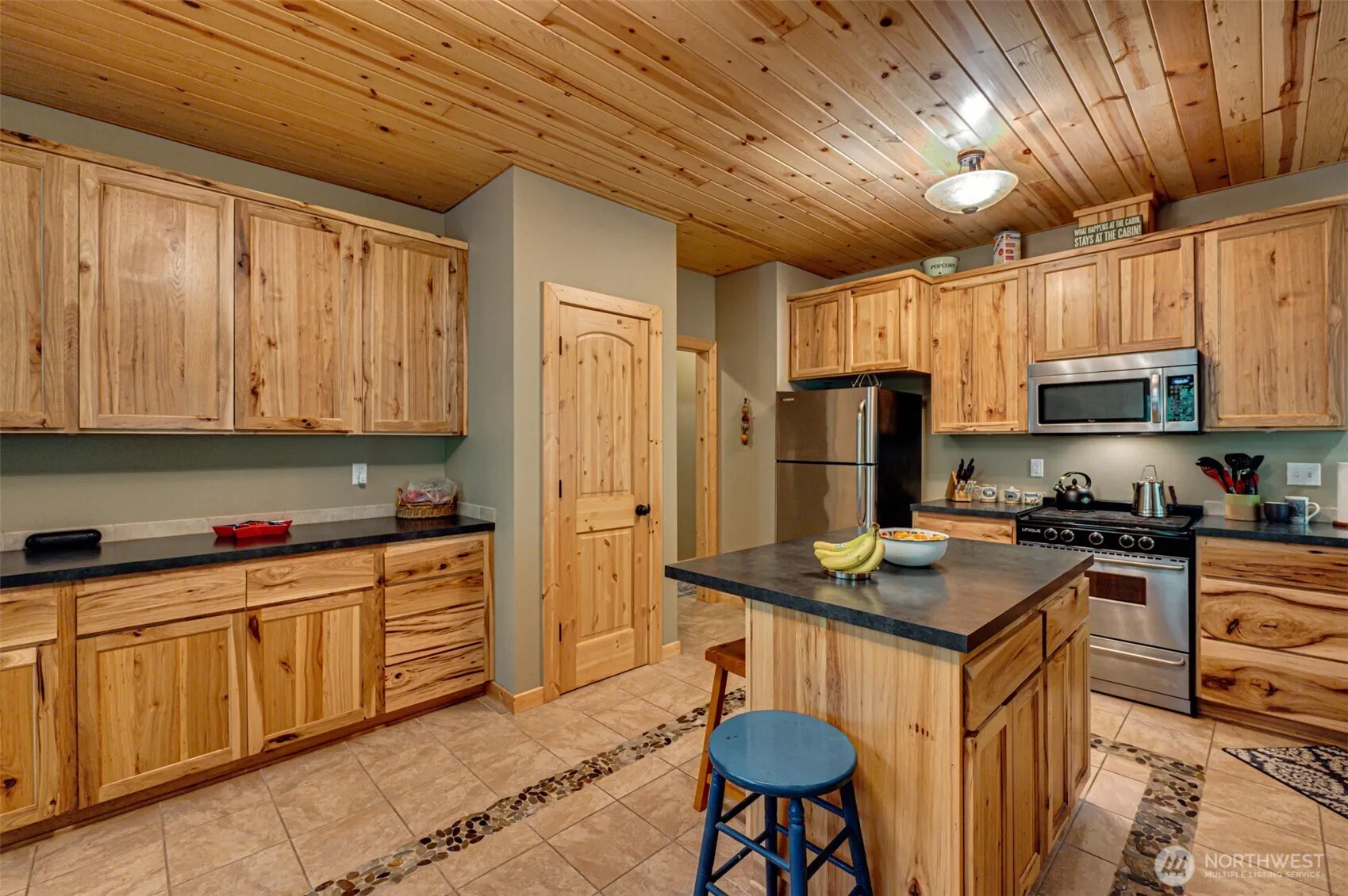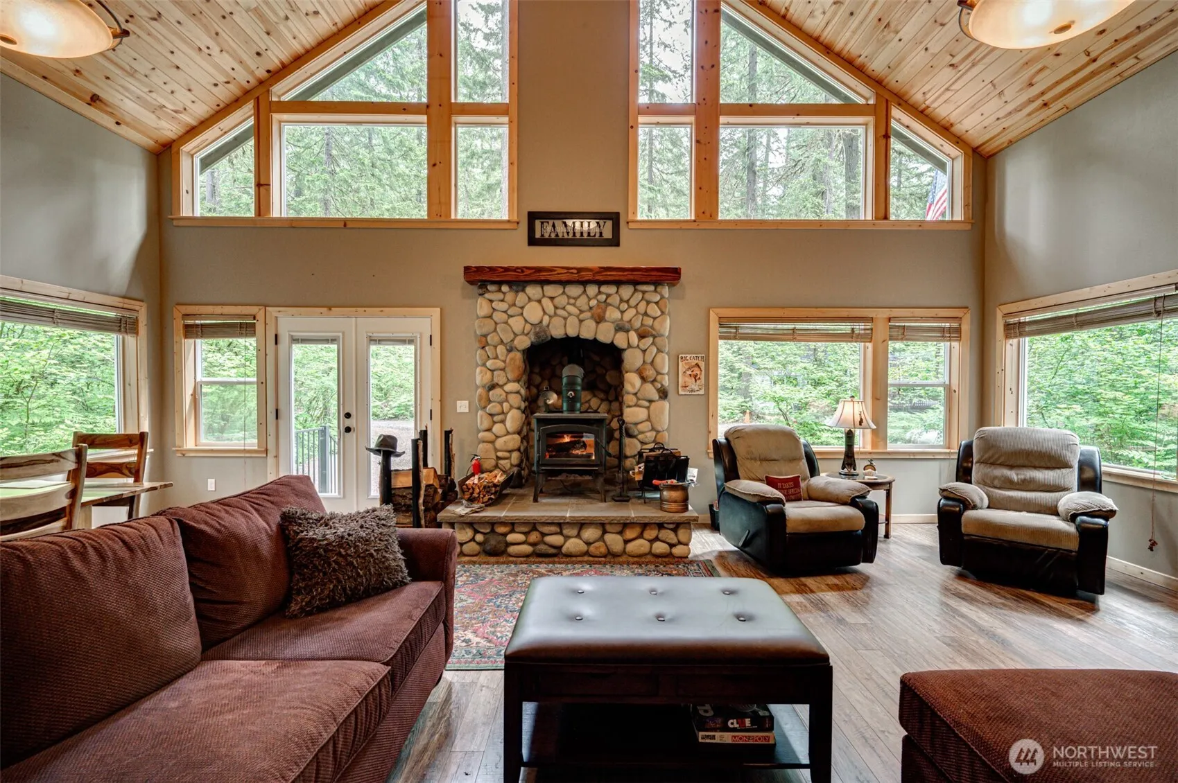 Escape to the serene beauty of The Northwoods in this immaculate, fully furnished 5-bedroom, 3-bath home. Boasting over 3,000 sqft. of thoughtfully designed living space. This one of a kind property blends rustic charm with modern convenience. This is luxury off-grid living. Step inside to soaring knotty pine ceilings and rich hickory cabinetry. Every bedroom is outfitted with custom pine log beds. The kitchen features top of the line appliances and plenty of space for entertaining friends. The generator has a direct line to the 500 gal. propane tank, new AGM 6-volt batteries (8), 360 watt solar panels (3). New hot water heater, exterior doors, and Trex decking. Starlink and We-Boost cell service. Fully furnished, schedule your tour today!