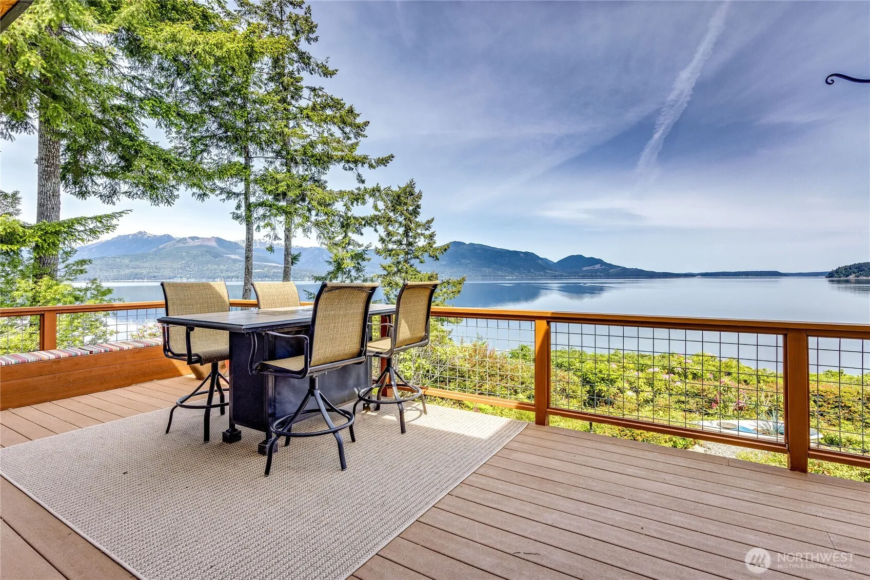 Reach out & touch the sweeping 270 degree Hood Canal & Olympic Mt views from this awe-inspiring waterfront property! 90′ of pristine shoreline + tidelands on .55 acre. Privacy, kayking, SUP & access to world renowned Hood Canal oysters, crab & shrimp! Misery Pt boat launch is just 2 minutes away! Gorgeous midcentury modern architecture has been meticulously preserved, updated & most rooms enjoy incredible views. An open floorplan is perfect for entertaining & easy indoor / outdoor living. Your new normal is waking to world class views, spectacular sunsets & moonscapes! Portico, carport & plenty of driveway parking + potential to add a garage if desired. Private community beach access. Live the serenity, majesty & magic of the Canal!