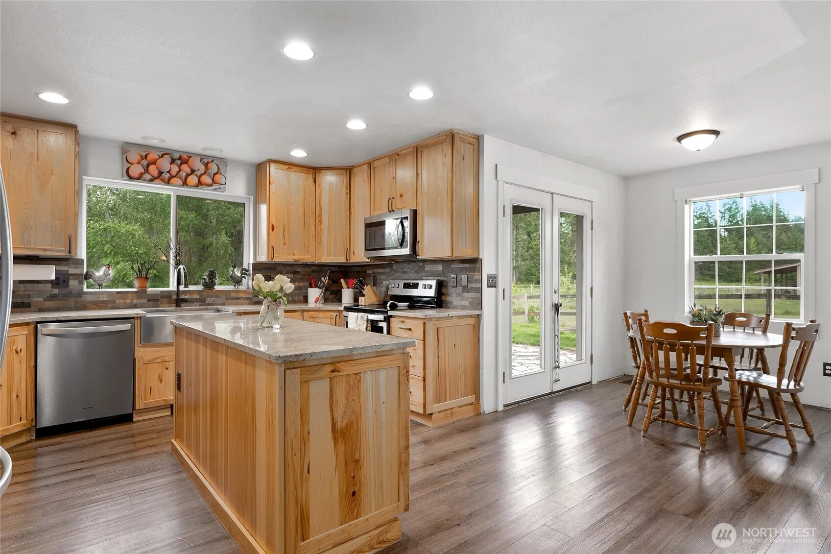 Serene pastoral property with a welcoming homestead & exquisite barn. The charming residence features newer LVP flooring, a cozy frplc, formal living & dining rooms, & updated baths. Retreat to the primary suite w/ a large walk-in wardrobe & a spa-inspired ensuite. The updated kitchen showcases warm hickory cabinets, sleek quartz counters, central island, & stainless steel appliances – blending rustic charm with modern style. Just off the kitchen, a patio terrace invites you to enjoy meals in the fresh evening air with peaceful views of the sprawling acreage. The stunning 2022-built barn offers a deep drive-thru garage, breezeway, hay storage, tack room, & four stalls w/ a side shed roof. Bring your animals & embrace the country ambience!