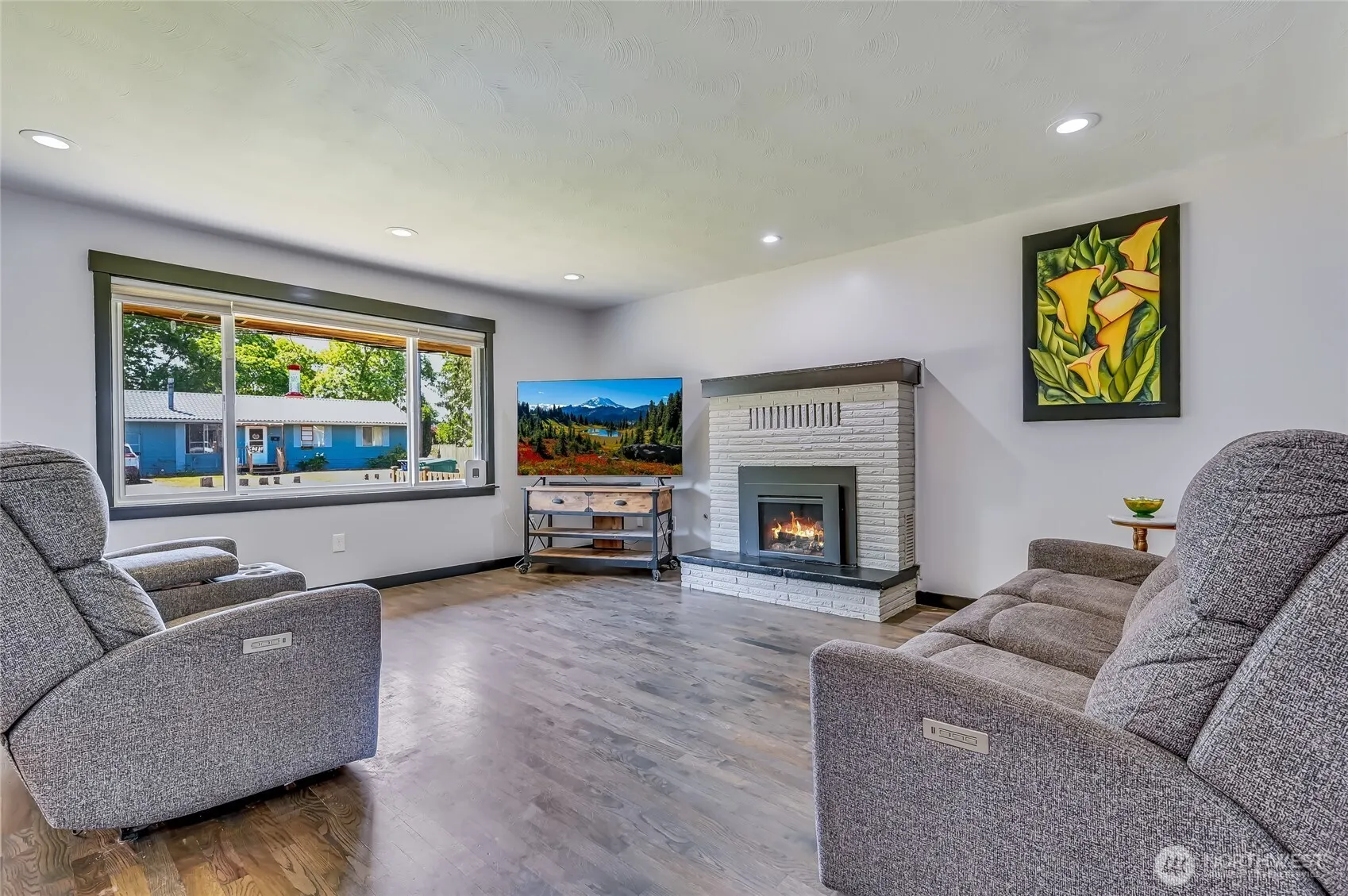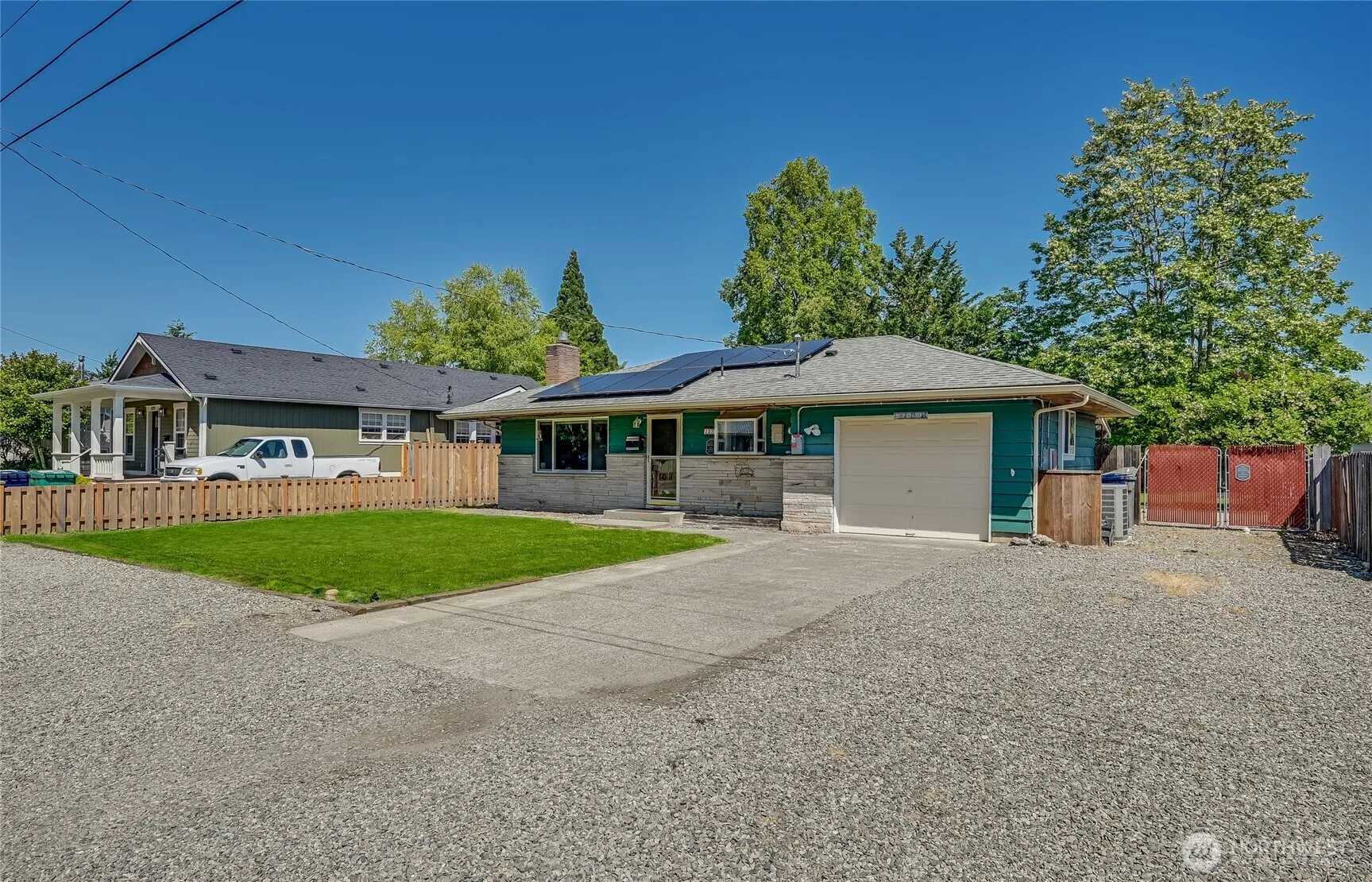 Beautifully updated 3 bed, 2 bath rambler featuring a stylish kitchen with stainless steel appliances, luxury vinyl plank flooring, and a private bath off the master. Refinished original hardwoods add warmth throughout the living room and bedrooms. Stay comfortable year-round with an energy-efficient heat pump and benefit from solar panels for reduced utility costs. Enjoy the spacious backyard with a covered patio and shed for extra storage. RV parking runs alongside the driveway. Conveniently located near McFarland Park, downtown Enumclaw, scenic hiking trails, shopping, dining, and major highways—this home combines comfort, efficiency, and an ideal location.