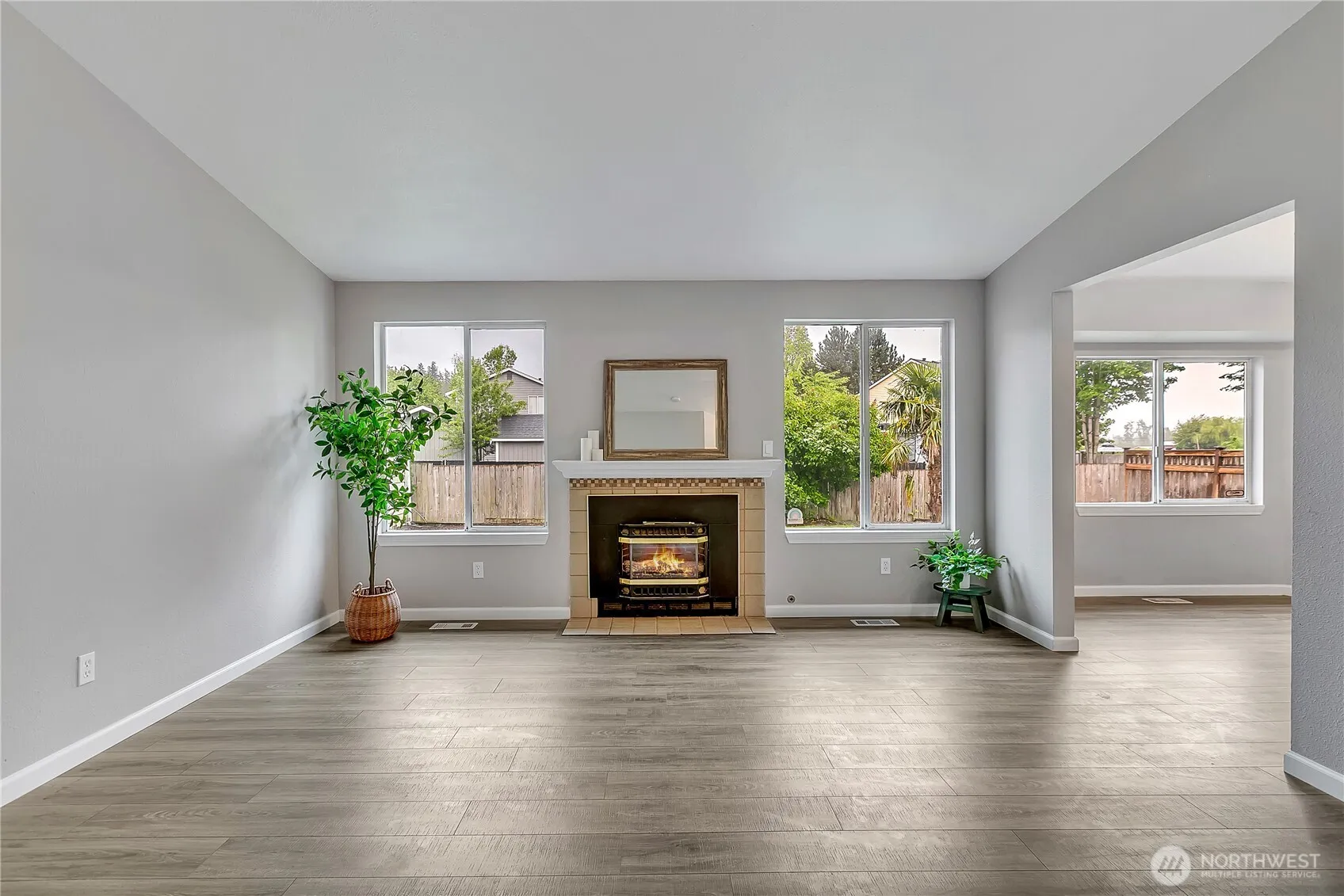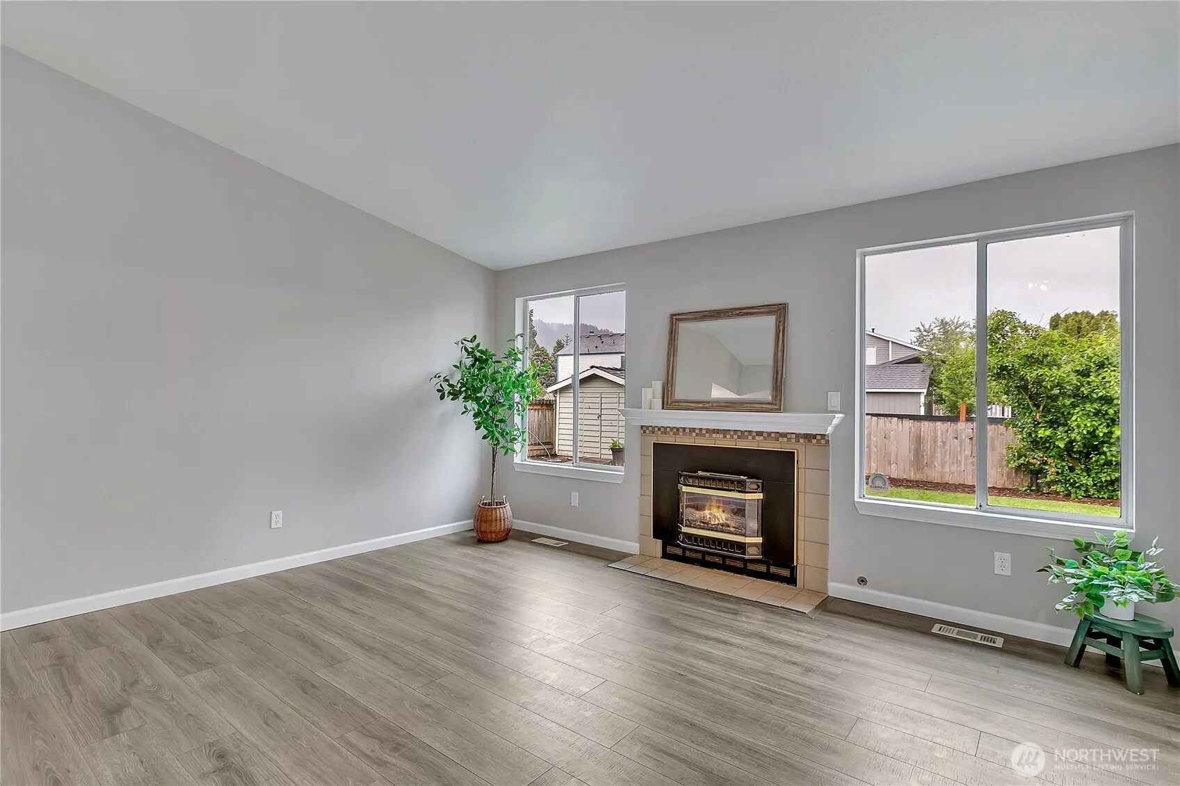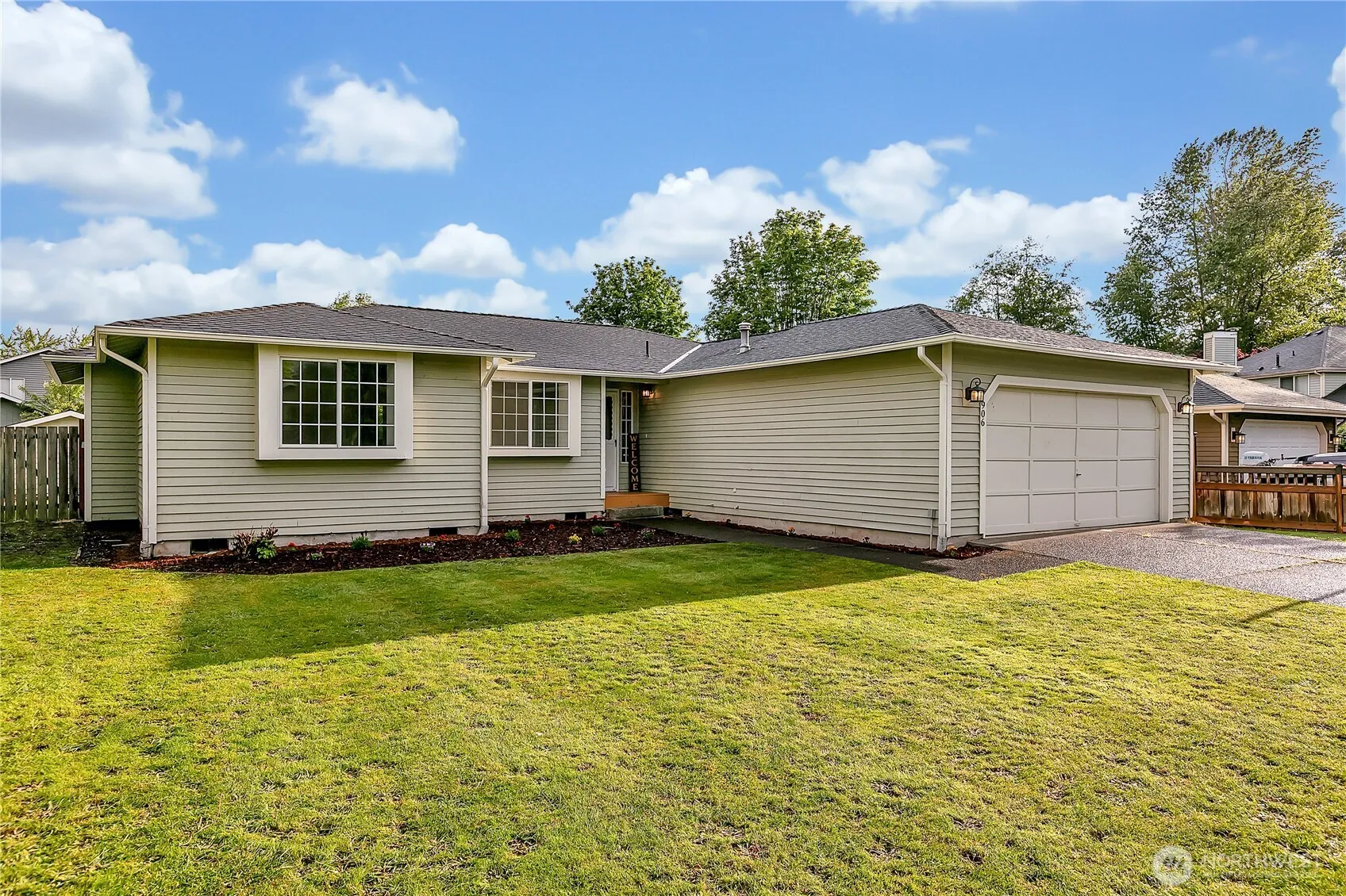 Nestled at the base of Mt. Peak, this charming 1,350 SF rambler in the established Pinnacle Estate neighborhood offers the perfect blend of comfort and convenience. Inside, discover comfortably sized living spaces featuring new laminate hardwood flooring throughout, updated millwork & new doors. You’ll also find a cozy fireplace and a bright dining room adjacent to the kitchen, which boasts new cabinetry and quartz counters. The large primary suite features an updated ensuite bath & spacious closets. Outside, enjoy a 2-car garage, a fully fenced backyard, an expansive covered patio & the peace of mind of a newer roof! This home’s incredible location is just minutes from downtown Enumclaw, walking trails, restaurants, shopping, and schools!